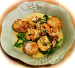 For sea scallops: Separately, pan sear the sea scallops in a hot pan with the butter. Dust the scallops with fresh ginger, a squeeze of lime or lemon juice and fresh ground pepper (or white pepper if you prefer). When nicely seared on each side (about 2-3 minutes per side depending on size of the scallops), you’re ready to plate.
