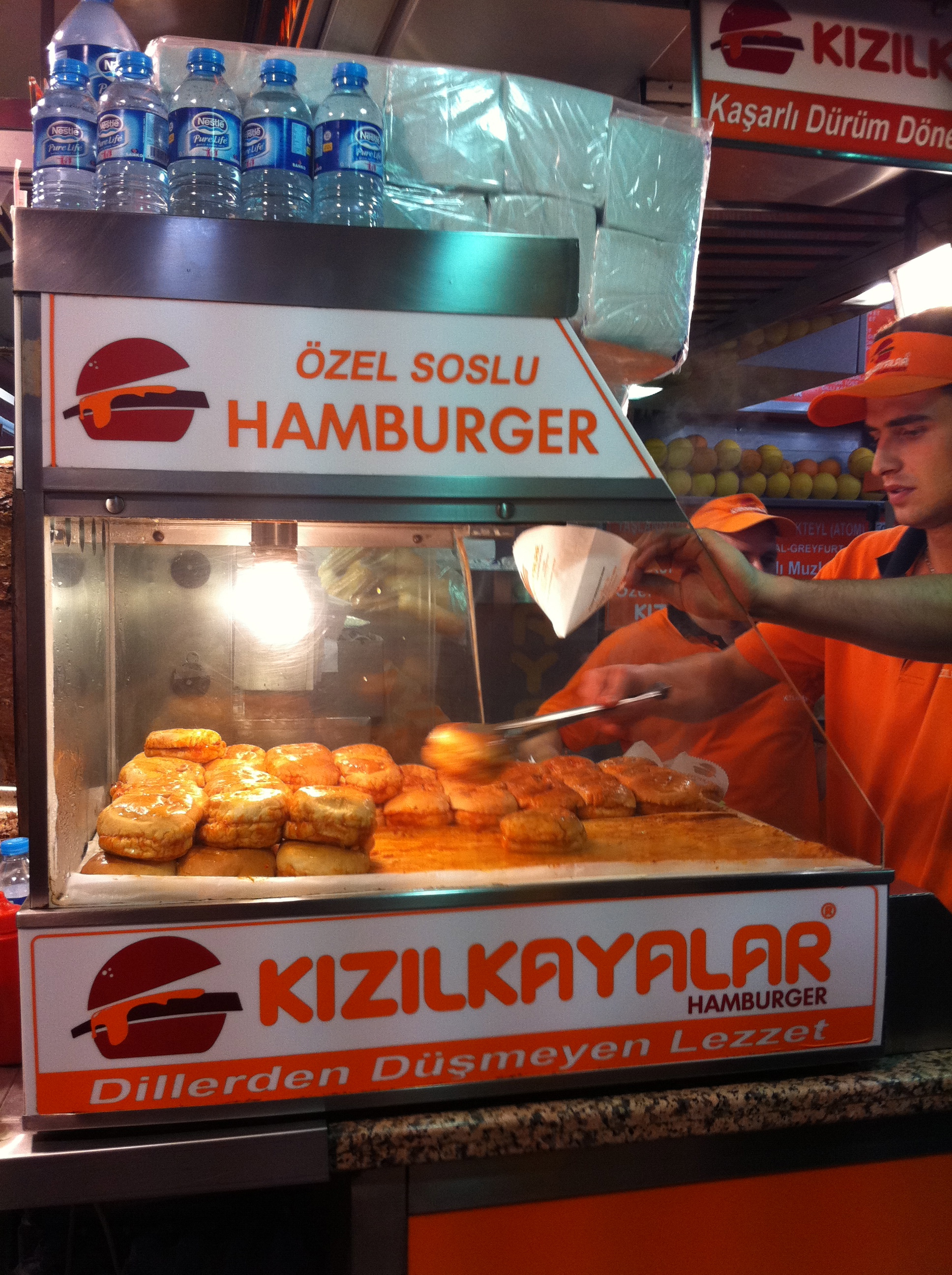 When you’re hungry again and in the Taksim area, pick up a Wet or Islak Burger — a White Castle-sized hamburger soaked in a lite tomato sauce. These are all around the square. Tasty, and usually fresh, especially at 2am, they cost about $1. And they shouldn’t wreak havoc on your stomach.