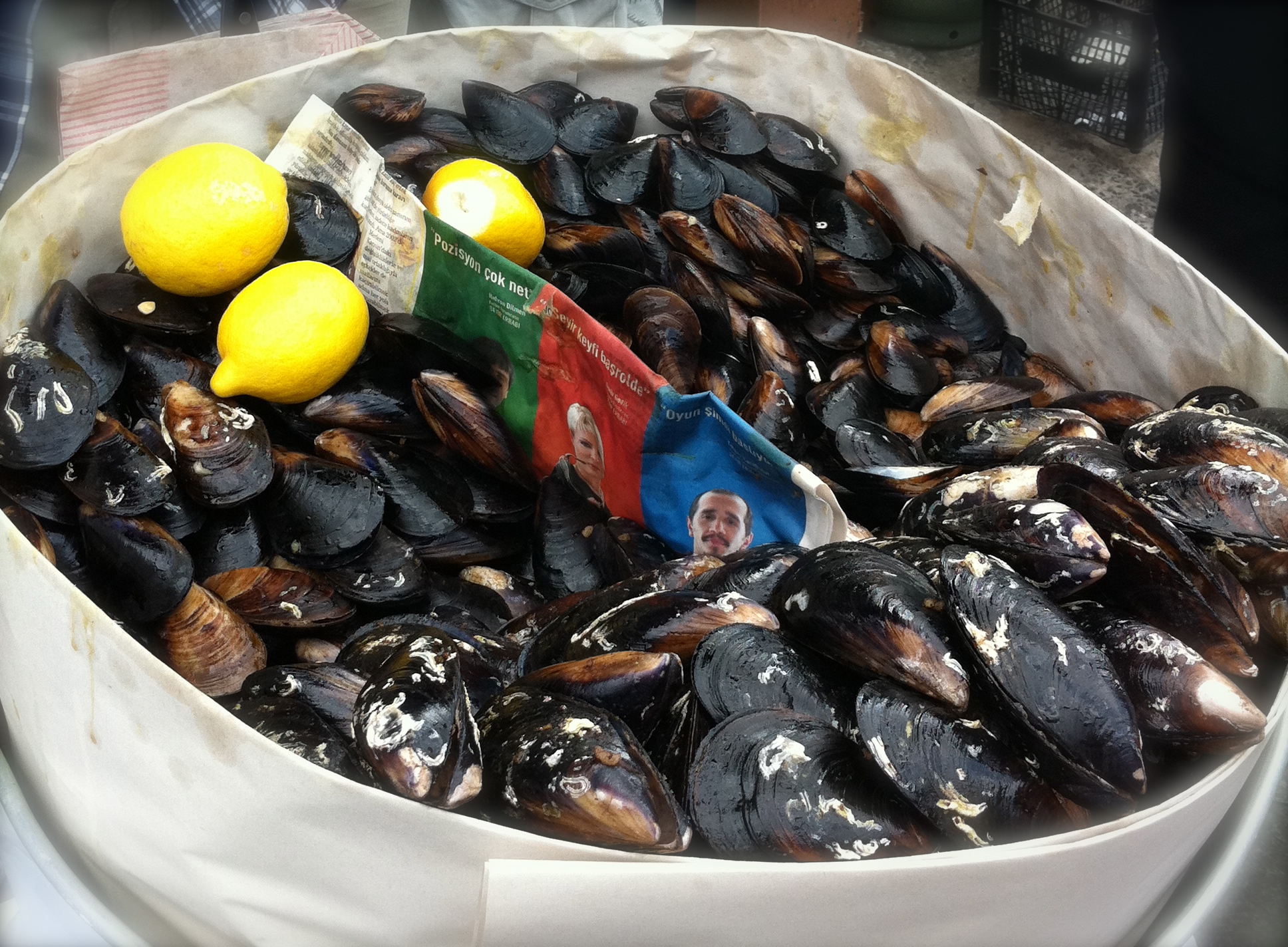 Across the bridge are floating restaurants, selling grilled fish sandwiches topped with peppers and lemon juice for about $2. Carts are on hand with trays of pickled beverages (tursu suya) to wash it down. Or you can opt, like I did, to patronize a family run establishment at a portable grill near the dock where a father and son may be selling fish they caught. Here you can also find the midye dolma (mussels stuffed with a rice blend and finished with a squeeze of lemon). Even though they’re delicious and only 1TL per mussel, stick with one even if you’re adventurous. When eating street food, you’ll most certainly get at least mild food poisoning at some point, with the mussels being the most lethal and likely culprit.