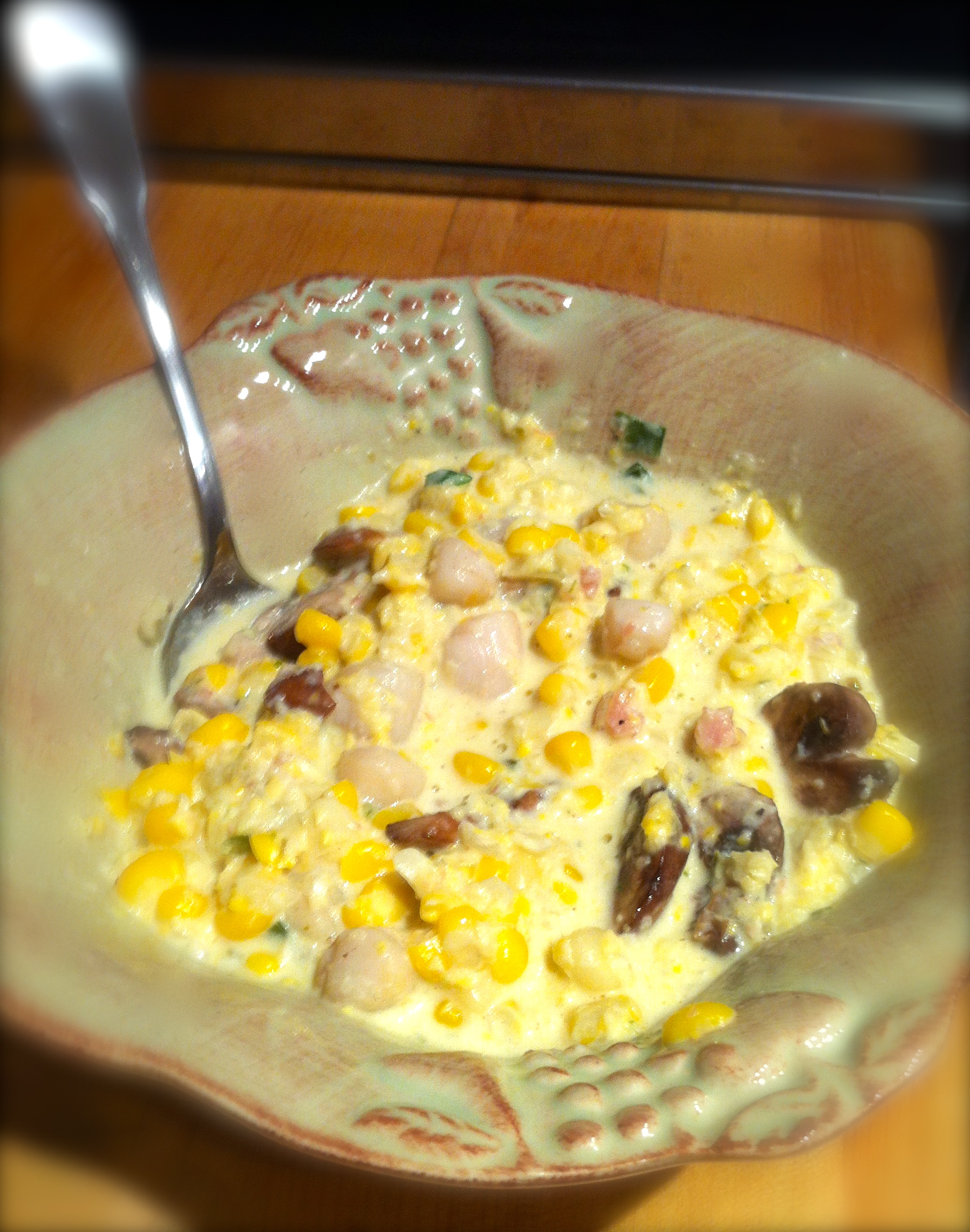 Summer Corn Chowder with Mushrooms and Scallops