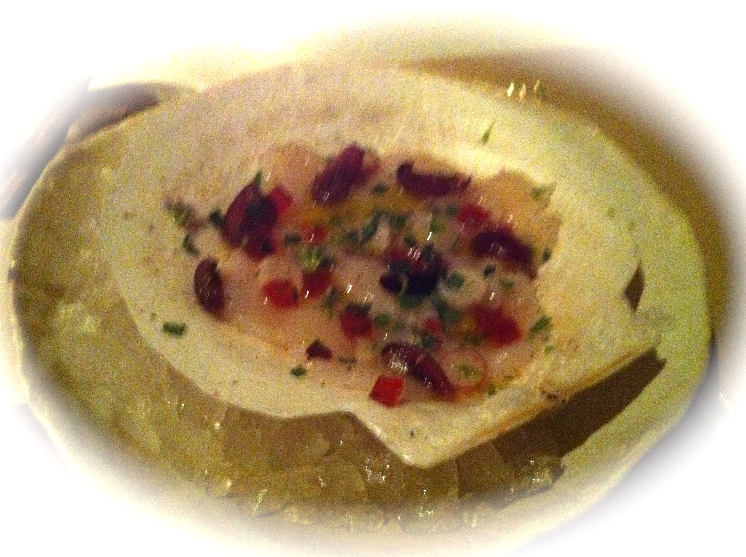 But since several of the raw fish appetizer options were intriguing, we decided to start with one of those.  Settling on the raw diver scallop crudo with chile, lime and cherries, it was an excellent choice.  The presentation on the scallop shell was lovely.  The freshness of the scallop came through with the hints of spice and citrus nicely complementing the saltiness.  It paired lovely with the old-fashioned.