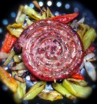 Maybe I’ve been on a sausage kick more than a stuffing obsession lately. It’s probably from all the grilled meat I smell at street fairs, on the boardwalk and at baseball games. But this recipe will not produce your standard boardwalk fare. It is, however, just as quick, delicious and satisfying.