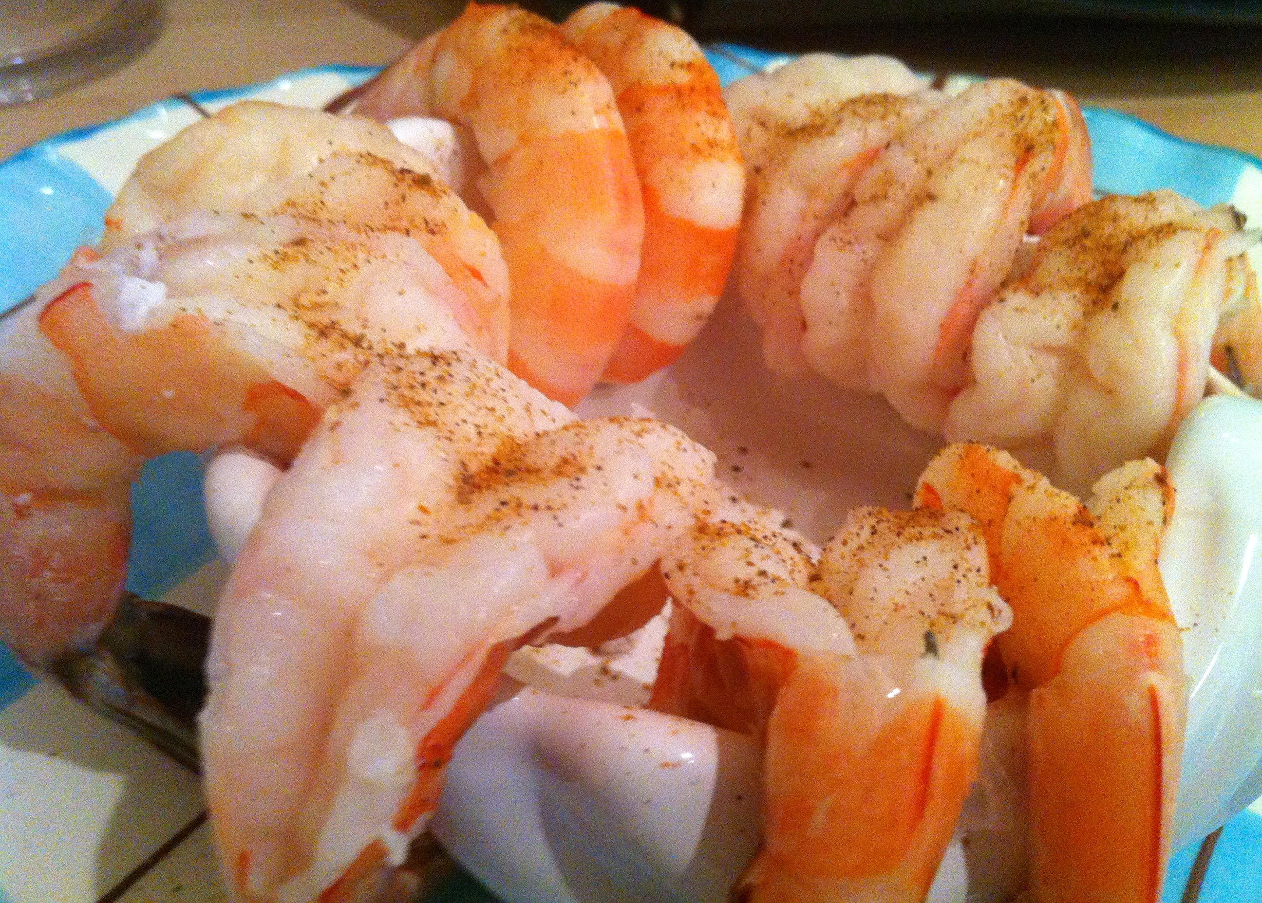 Bring a large pot of salted water to boil (I like to use Old Bay instead). Add the shrimp and return to a boil. Then lower the heat and simmer for 2 minutes or so. (Timing will depend on the size of the shrimp and how long it takes the water to boil again. You don’t want to overcook the shrimp, but you don’t want to undercook it either. They should be a slightly brighter pink color when done than when they first change color.) Immediately remove the shrimp from the pot and immerse in ice cold water. Continue to chill in the frig or freezer until cold.