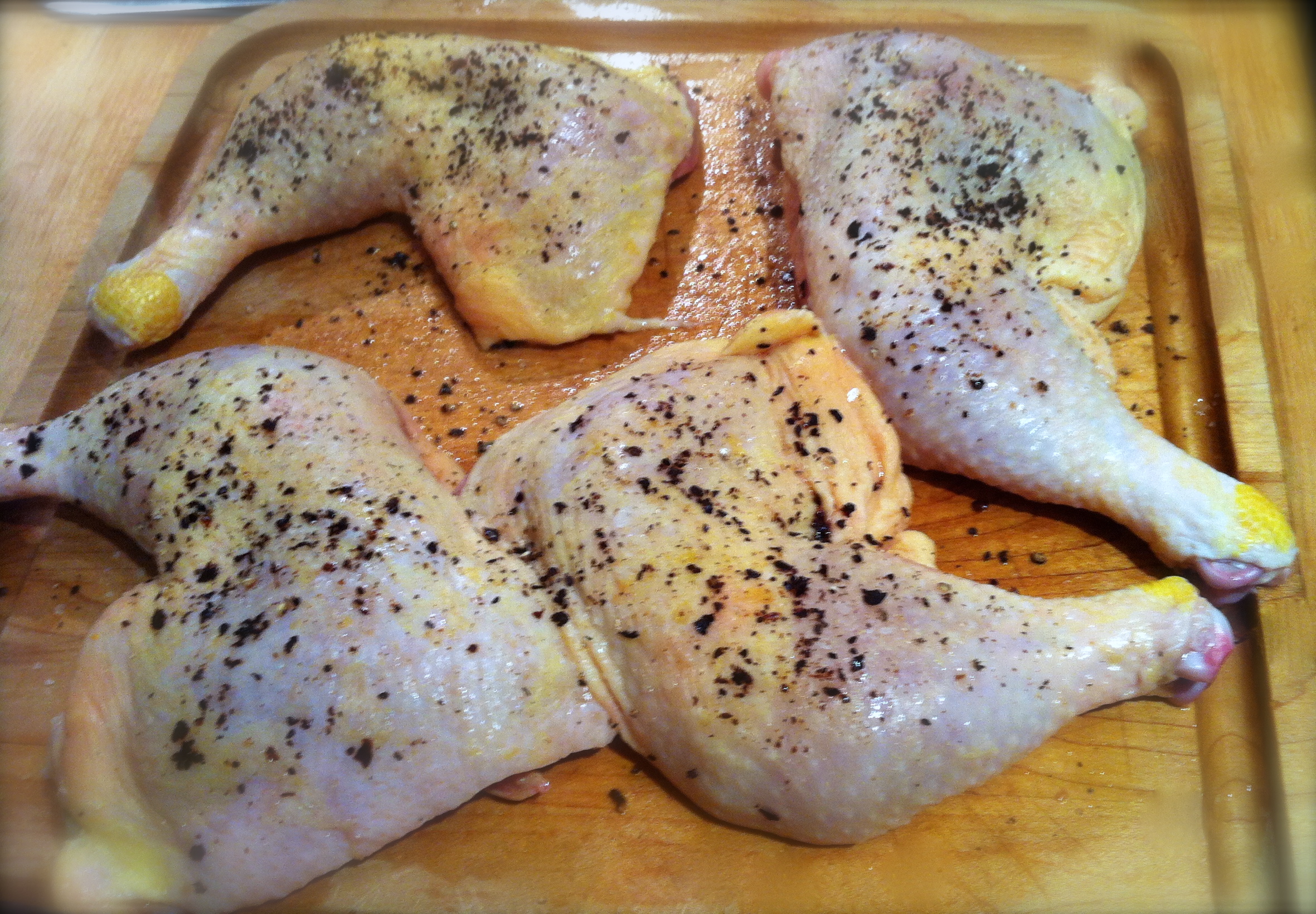 Rinse the legs and pat dry. Season generously with salt, pepper and smoked paprika.