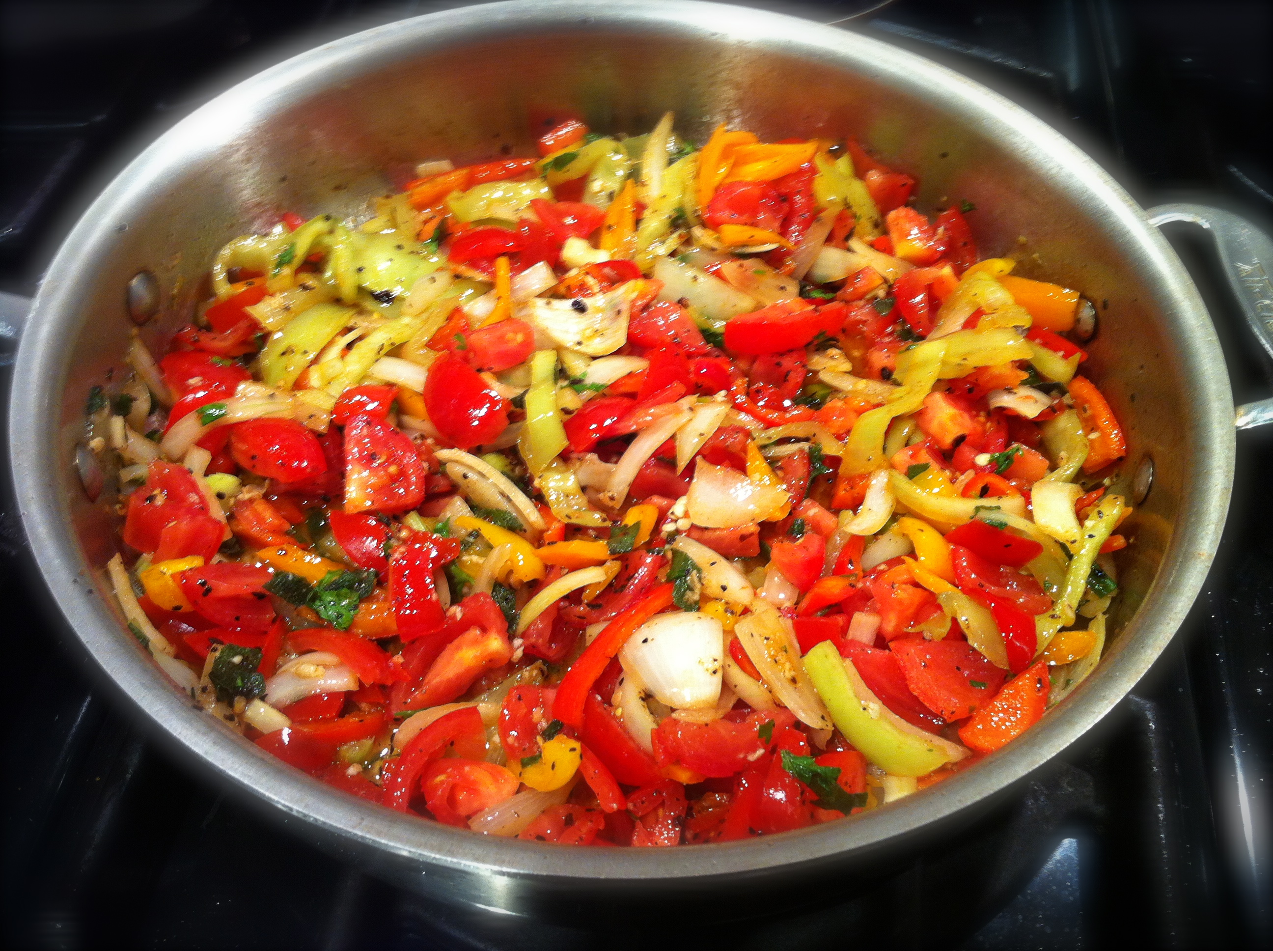 5-8 peppers, assorted types and sizes of your choosing, julienned or chopped