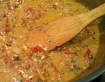 Remove all but about one tablespoon of the drippings from the pan. Add the peppers, onions, celery, garlic, red pepper and herbs. Sprinkle with more salt, pepper and smoked paprika. Saute. Add tomatoes. Add more salt, pepper and spices if desired. Cook for about 2 minutes.