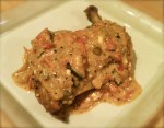 Heat the oil in a large saute pan over medium-high. Add the legs and brown skin side down for 6 minutes. Turn and brown for another 3 minutes. Remove and place on paper towel lined plate to drain.