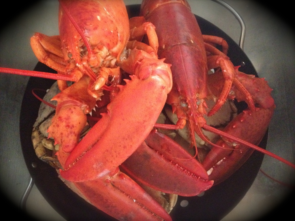 Lobsters have been cheap this summer almost everywhere on the East Coast. So I’ve been eating a lot of that. While people love to grill, I think the easiest and tastiest way is to just steam them with Old Bay and some lemon for 12 minutes. This bright red color should be what you get.