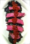 My first attempt was shockingly delicious, spicy, flavorful and easy. It was so good I wanted to put it on everything. So I tried it on top of some mid-rare flank steak. Yum!
