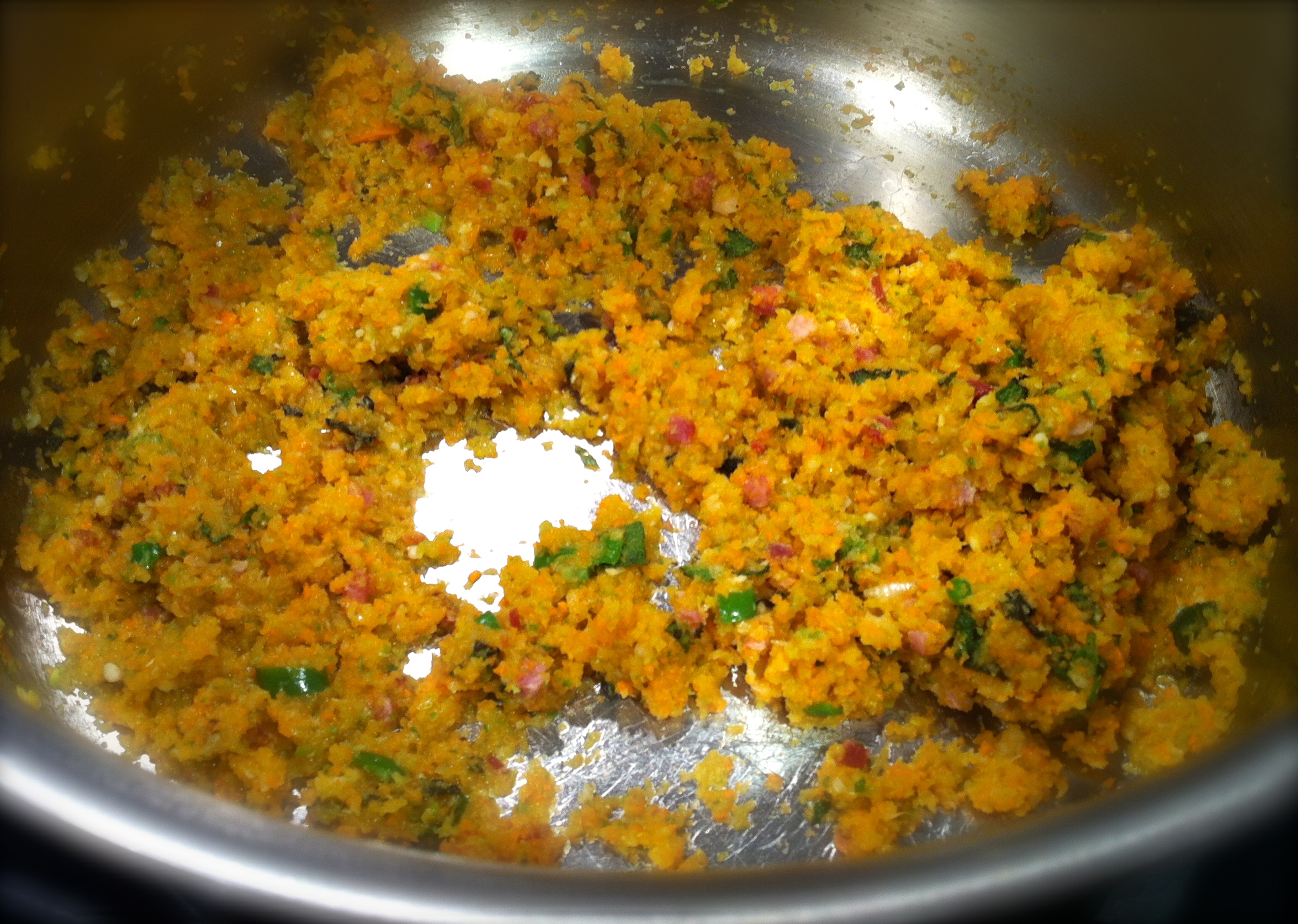 In a food processor, combine onions, celery and carrots so they are diced thin. (I tried it without the food processor, and it’s a chunkier soup, which I did not prefer with the cheese. If you want to try it the other way, cook the veggies for about 10 minutes instead of the 3 minutes noted below.)