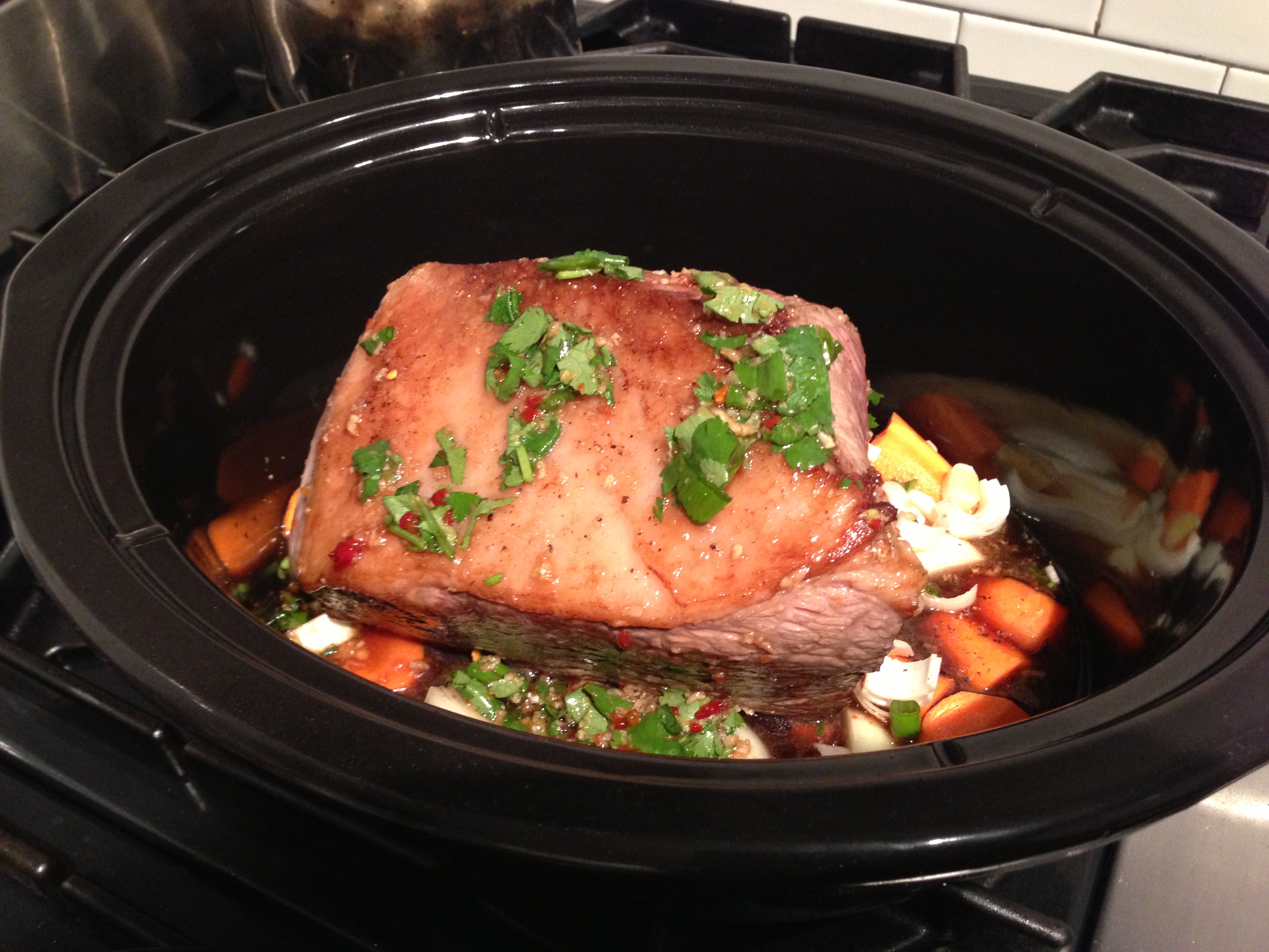Looking for a modern take on a classic American comfort food, I came up with this Asian inspired recipe replacing an easy to find and inexpensive roast cut for the usual short ribs. The meat was flavorful, mildly spicy and very moist from the broth. And I got a chance to use my new Schmidt Brothers knives!