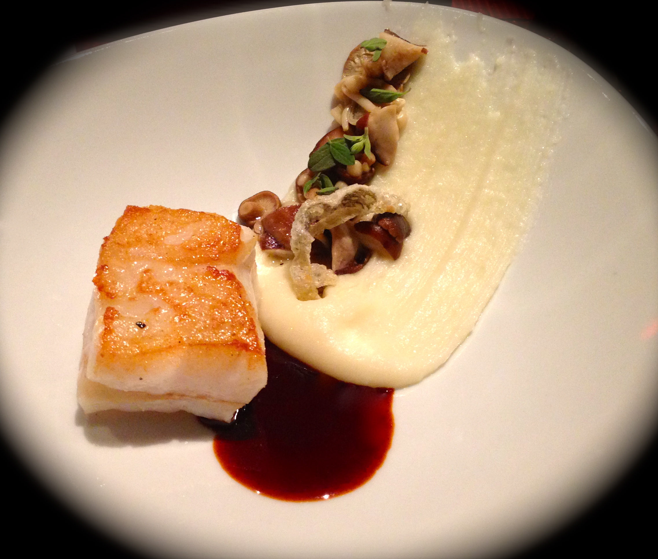 In the meantime, we slowly sipped the wine as we devoured the pan-seared cod and smoked mashed potatoes topped with pickled mushrooms, all accompanied by a splatter of red pepper oil.