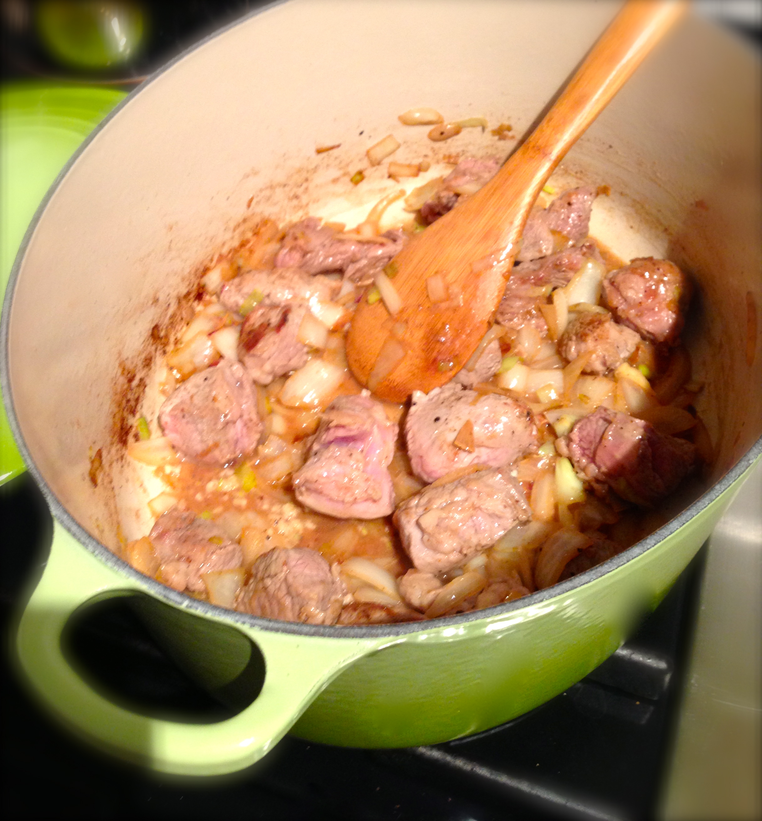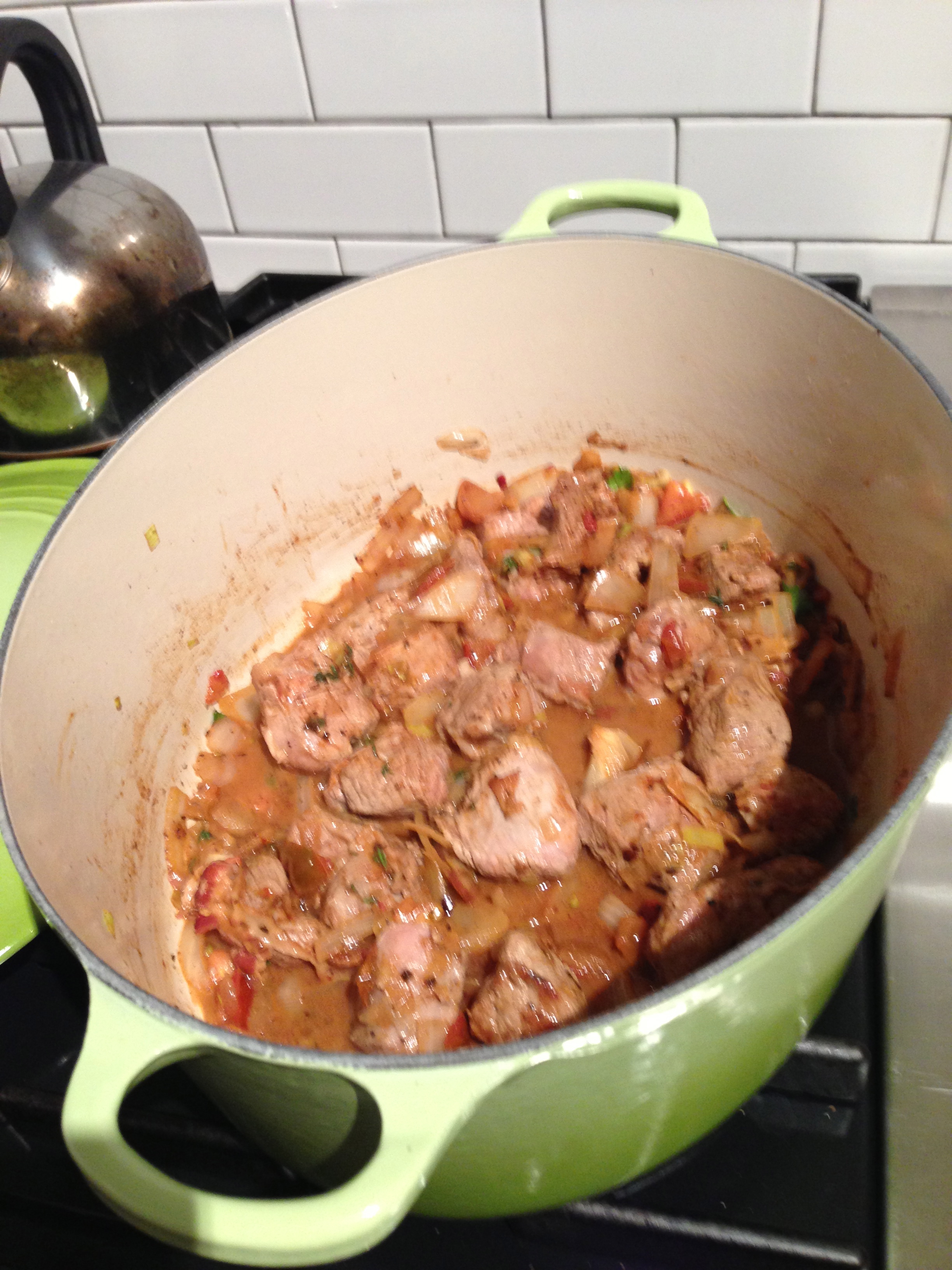 Add the veal back in and the tomatoes. Stir to mix. Place the lid on and cook over low heat for about 50 minutes.