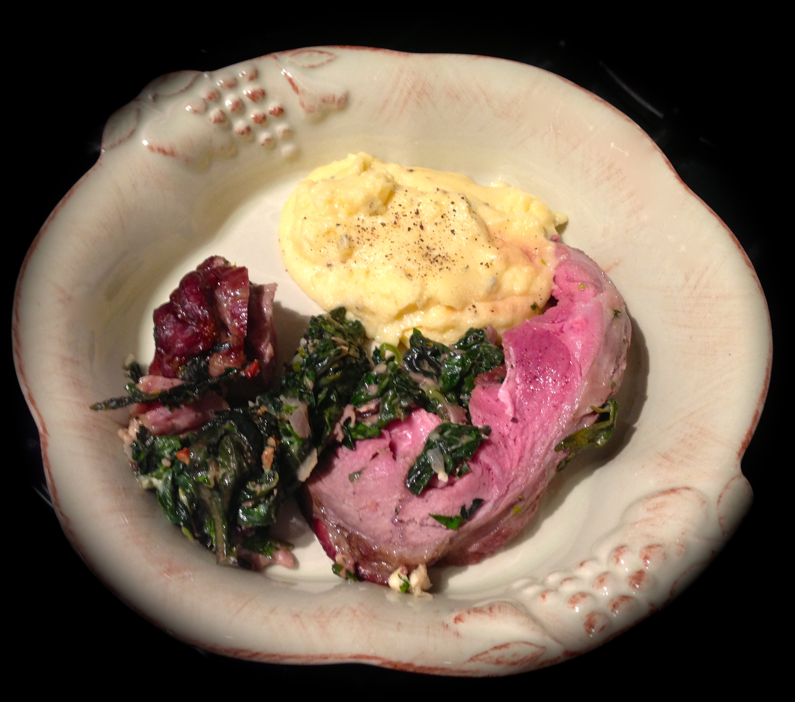 With polenta and greens on the side. Perfectly medium rare!