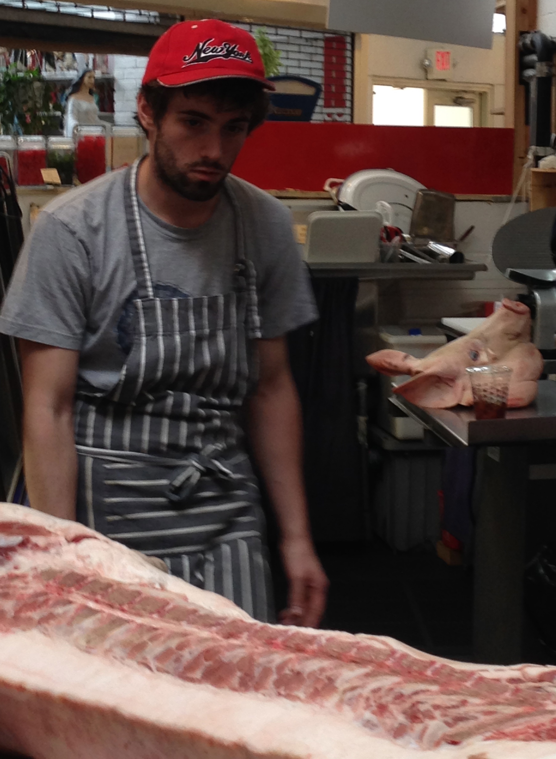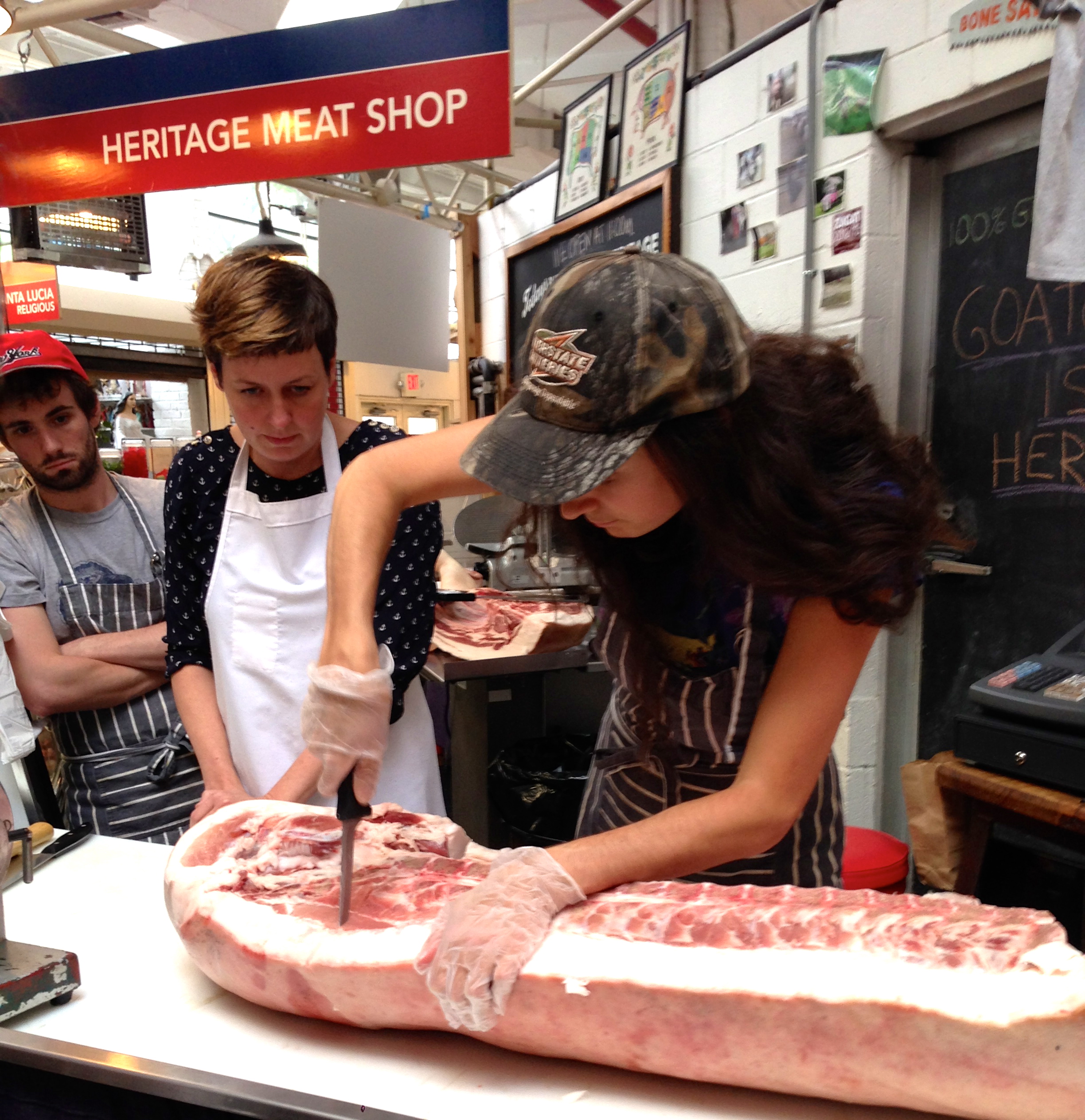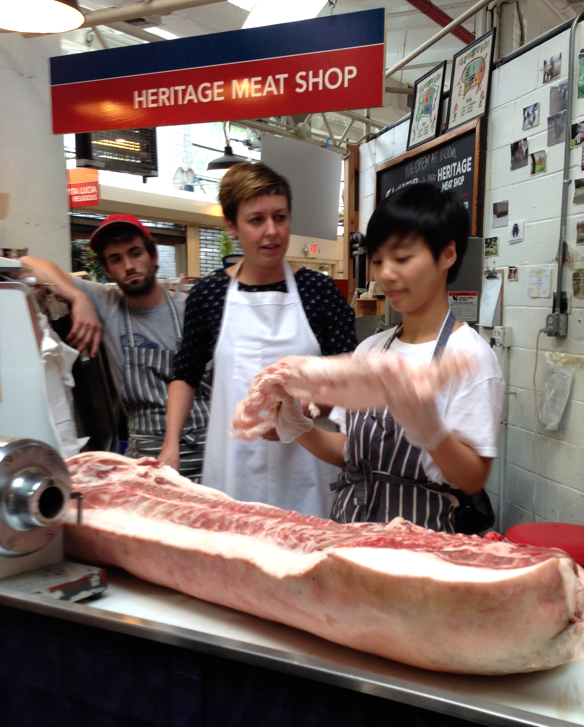 So when I had the opportunity to attend a hog butchery class at Heritage Foods in the Essex Street Market courtesy of the NYU Food Studies program, there was no way I’d miss this chance.