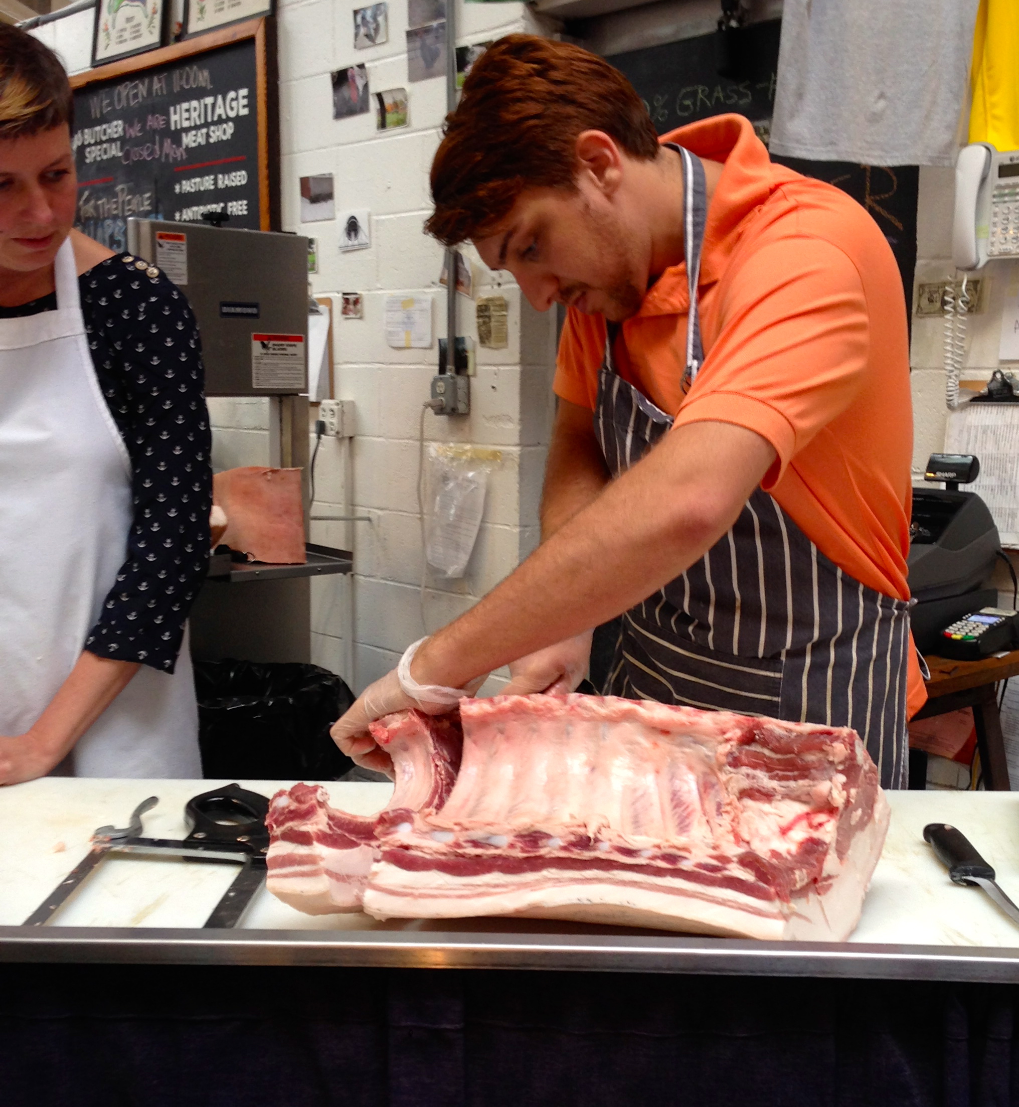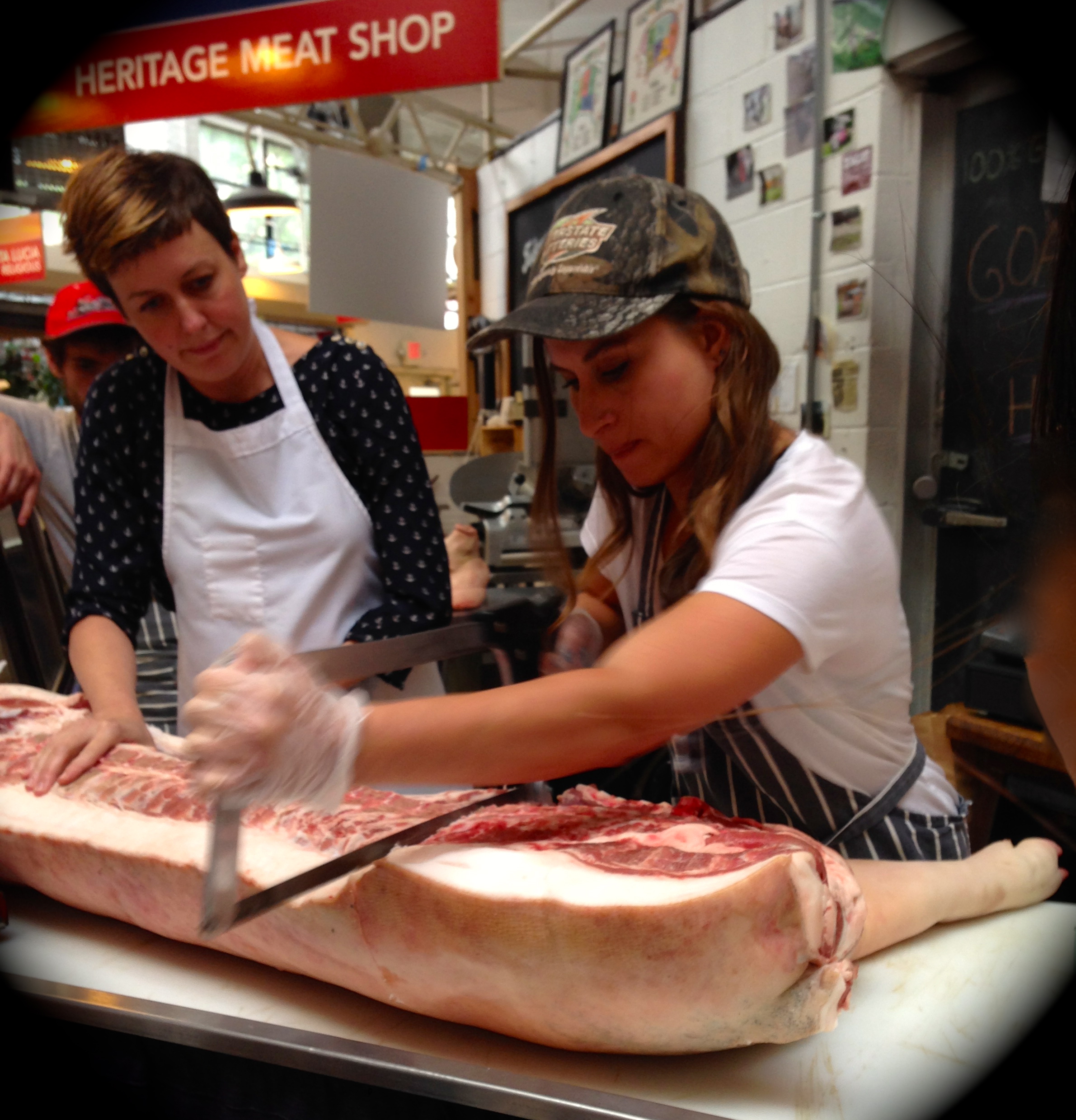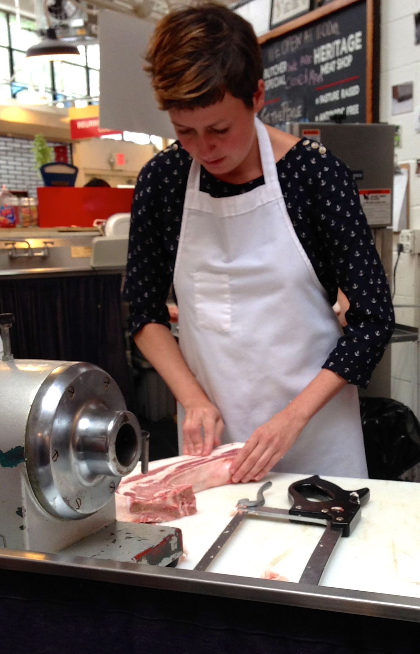 The woman from Heritage (who sadly didn’t introduce herself) cut the fat away from the chop so that it was ready for the meat case.