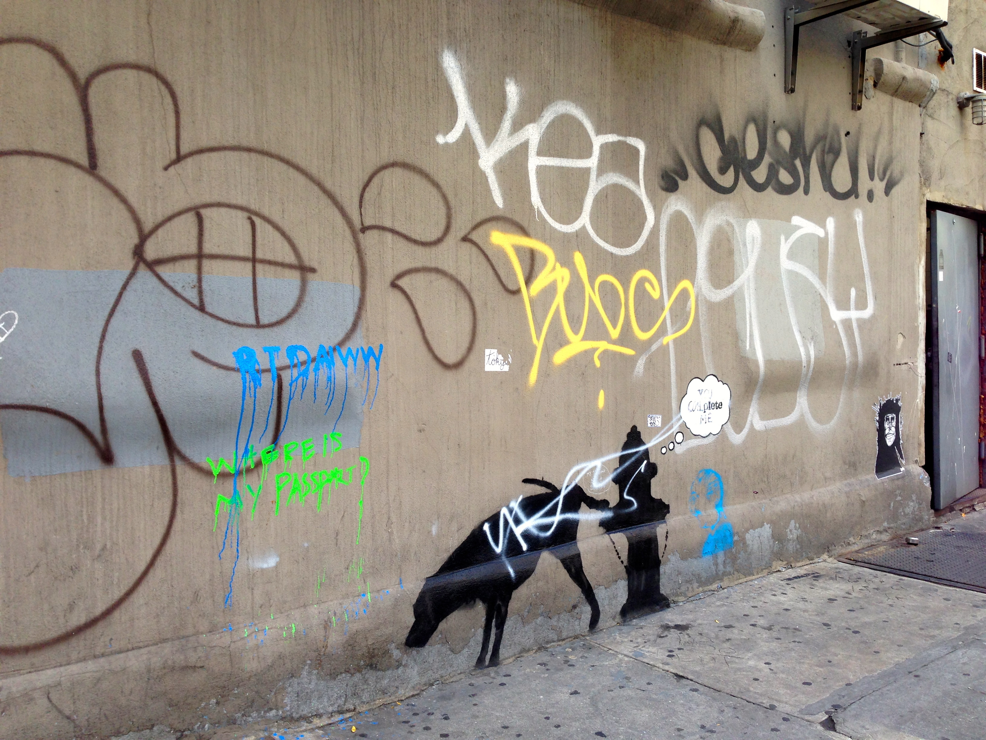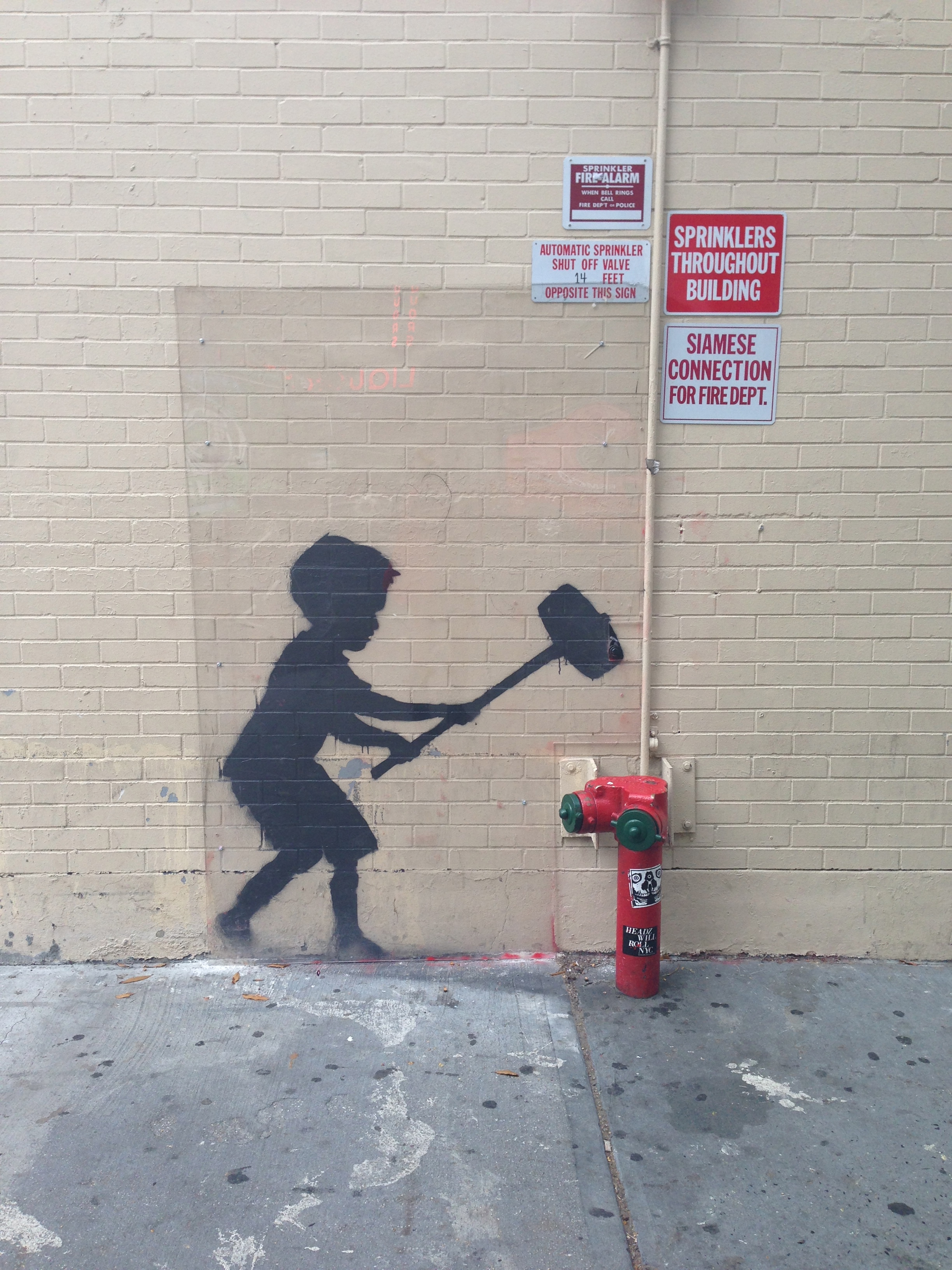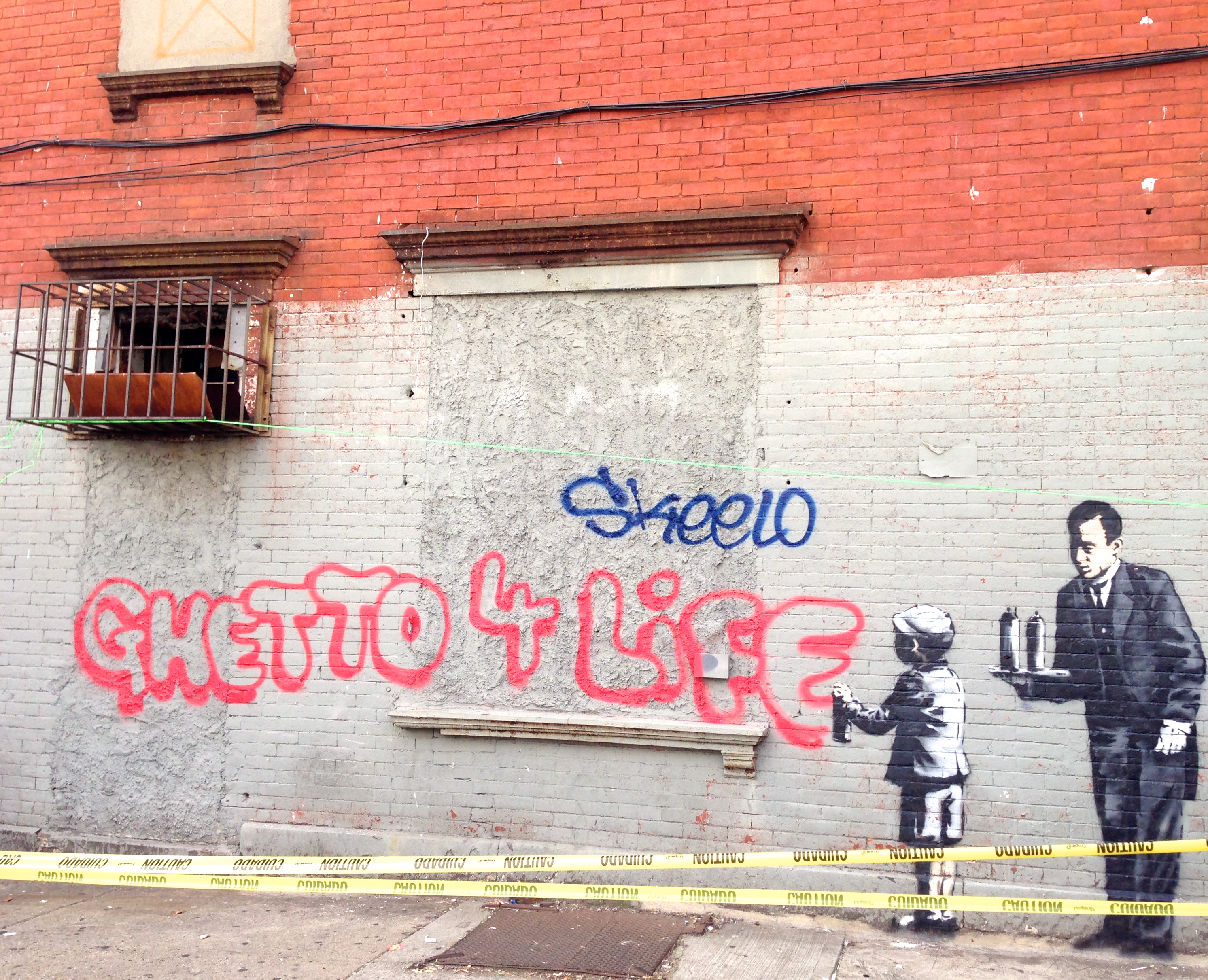 In every neighborhood and type of locale, from the upscale to the ghetto, no part of New York was left untouched. In case you somehow missed all the buzz, the anonymous graffiti artist devoted the entire month of October to creating art installations around town. He utilized every medium, enlisted people as props, sold paintings in Central Park (too bad I missed that one) and made all five boroughs of the city his canvas. And I was fortunate enough to chase a few of his works down and capture them before someone had a chance to destroy them.