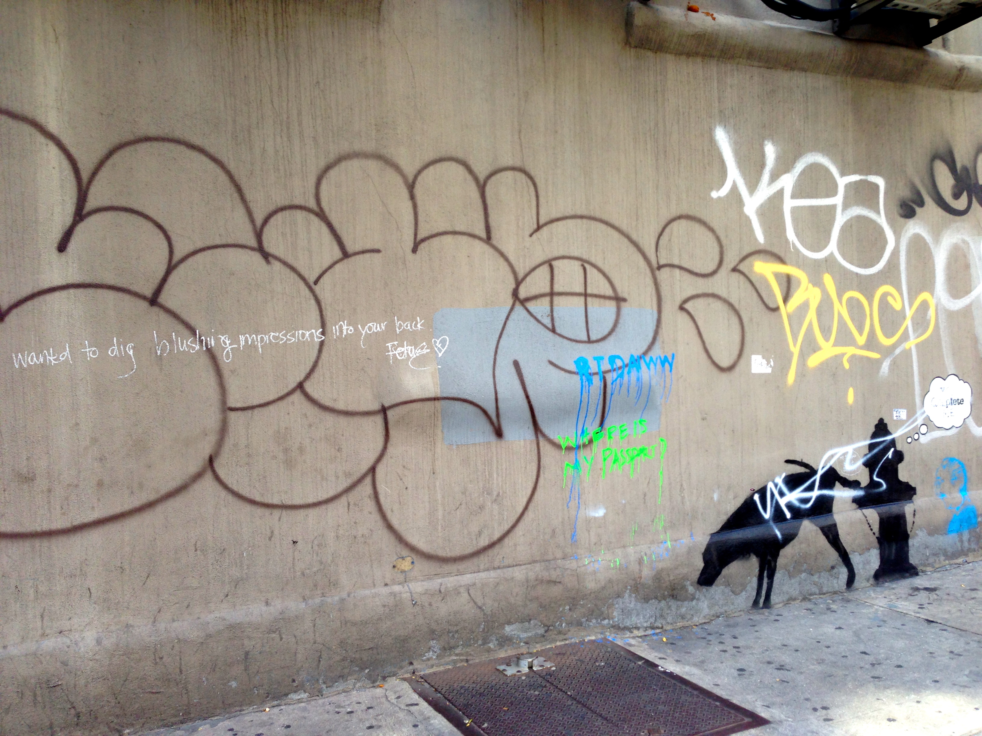 My favorite is the one from my neighborhood, on West 79th street, which is now permanently protected by plexiglass and the only one that is missing writing, as far as I know- possibly because he was on the verge of being caught and didn’t have time to finish tagging it.