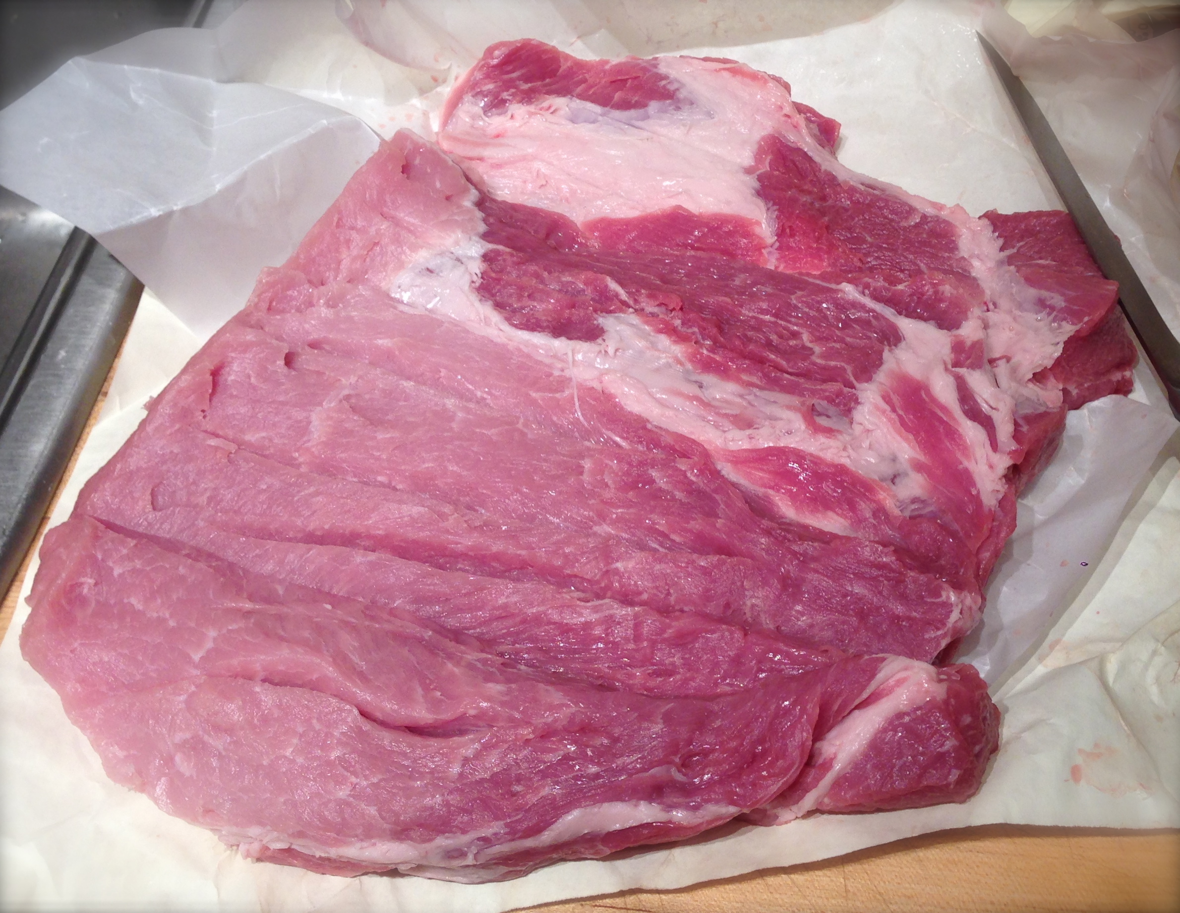 1-2 days in advance, prep the pork. Cut the meat open in a way that will allow you to stuff it and roll it back up. Even if you mess up a bit, don’t worry, it will still be good.