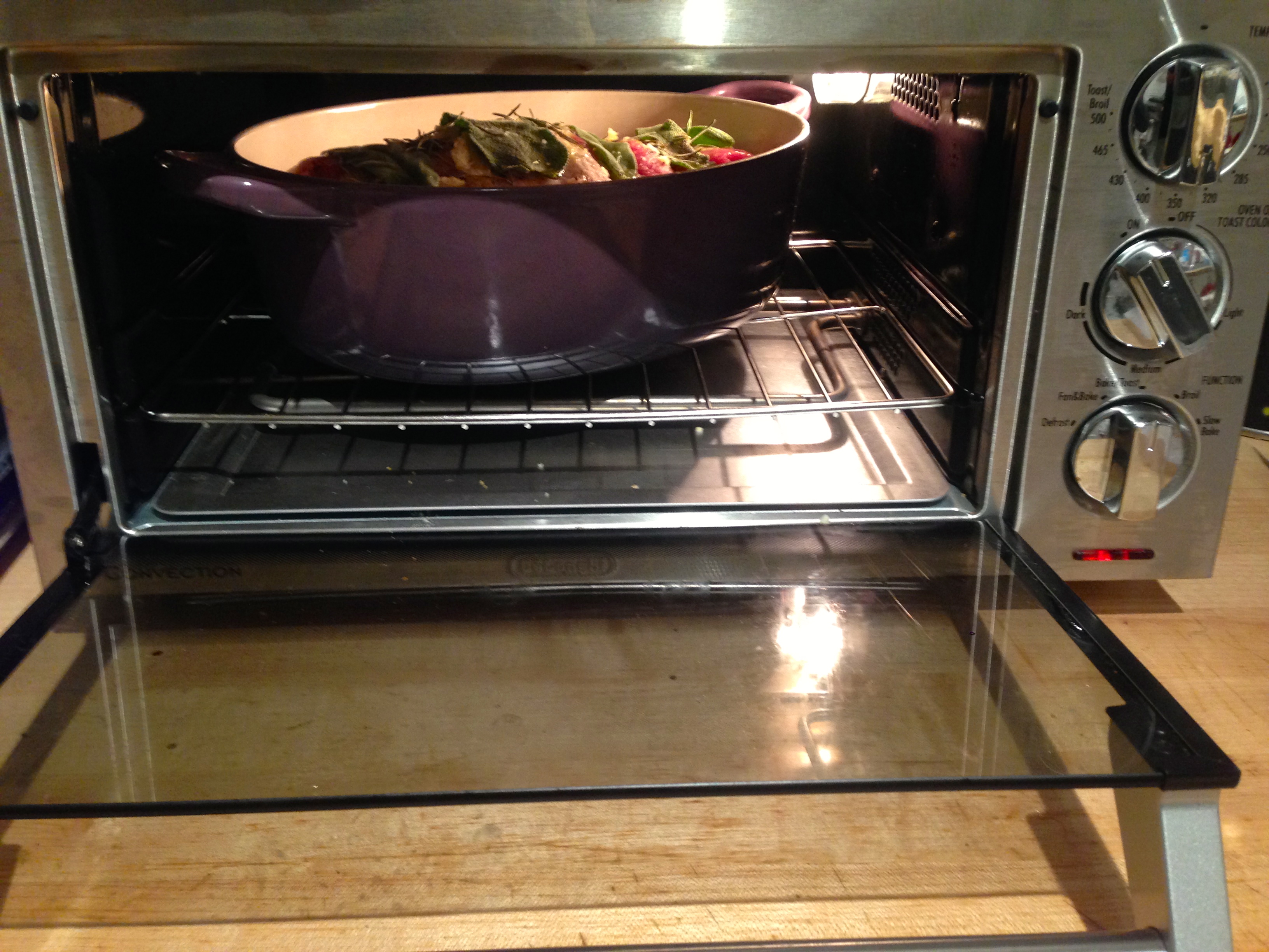 Because I was doing this in a toaster oven I ended up broiling it for about 10 minutes so it was nicely browned on the top. You certainly can brown before or roast at 450 degrees for 20 minutes and then lower the heat. I don’t think it will matter much, but it will depend on how you are cooking it and what pan you are using.