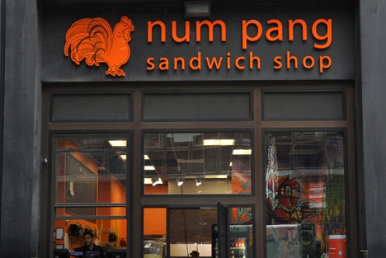 I get daily emails from Grubstreet, Eater and a ton of other websites devoted to keeping up on the latest in NYC food happenings. Yet somehow I was unaware of Num Pang, a gourmet bahn mi shop, with several locations around the city. Fortunately, when I picked up Edible Manhattan (checkout the article on the NYU Urban Farm Lab), I discovered the profile on this delicious sandwich shop. The review was so glowing, we had to try one right away. Plus, it was a teaser for our upcoming trip to Vietnam!
