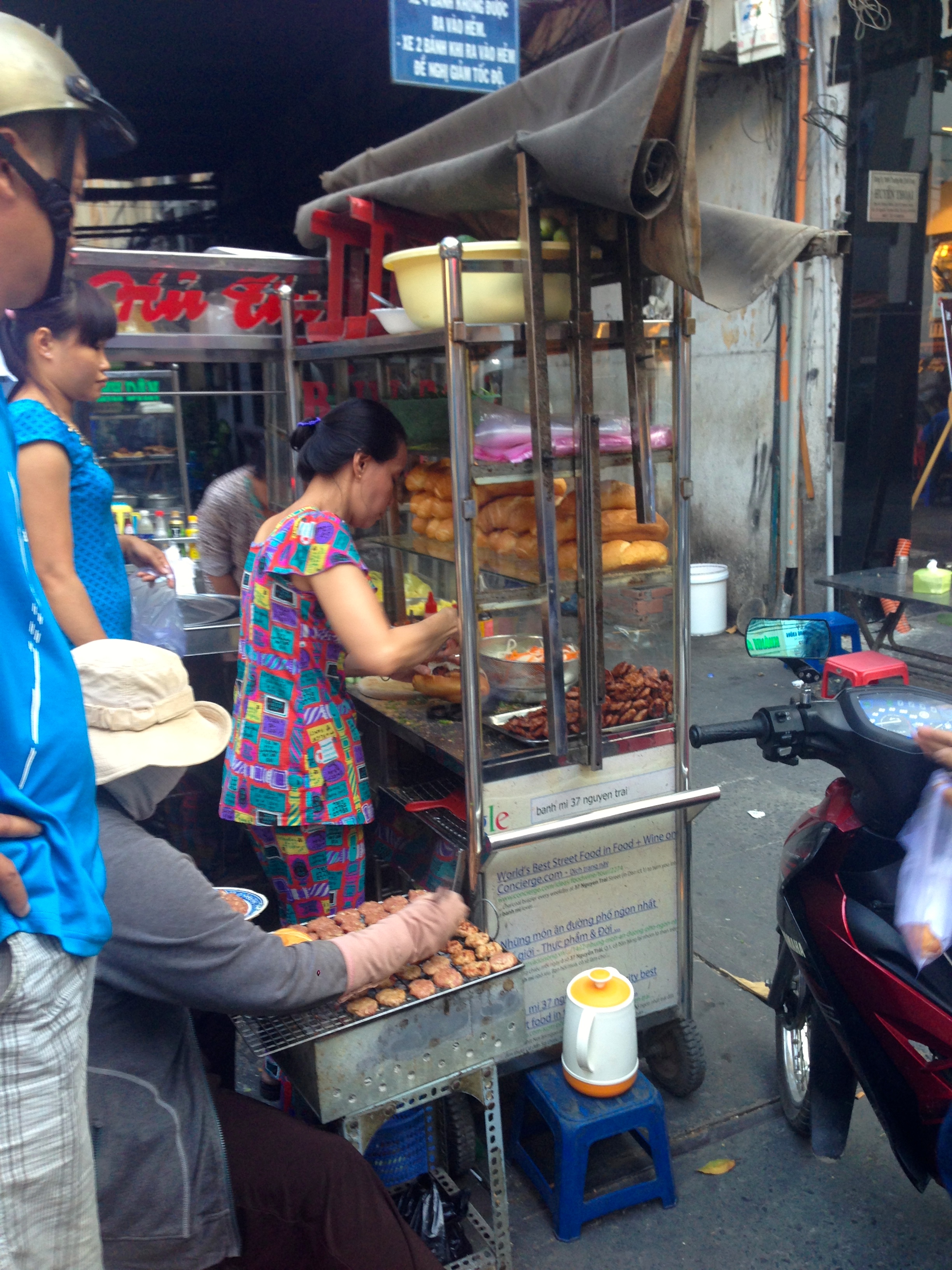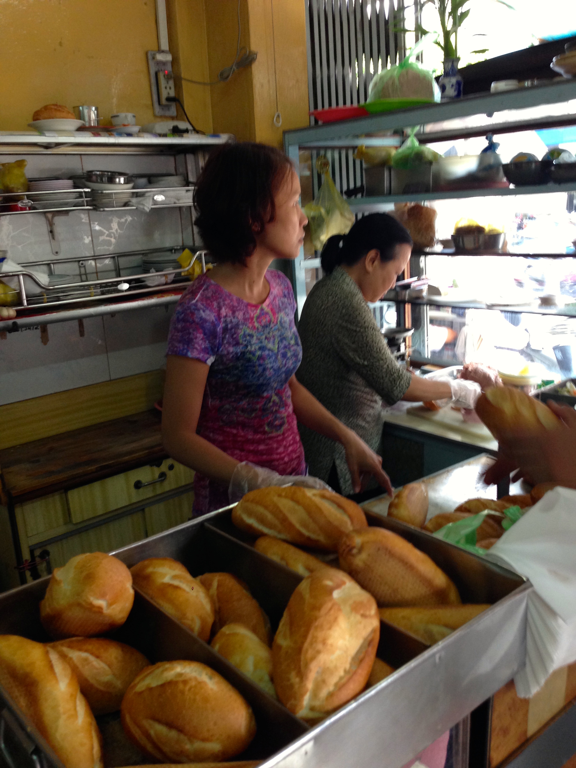 Before the trip, I researched where to go: checking all the major critics, reports in the WSJ, Travel Channel, Anthony Bourdain, TripAdvisor,  and a local blog, Eating Saigon, for the most recent info.  Bahn mi is typically a breakfast food, but some places serve it in the afternoon.  And since we arrived in the afternoon, having skipped lunch, we needed a place open later.