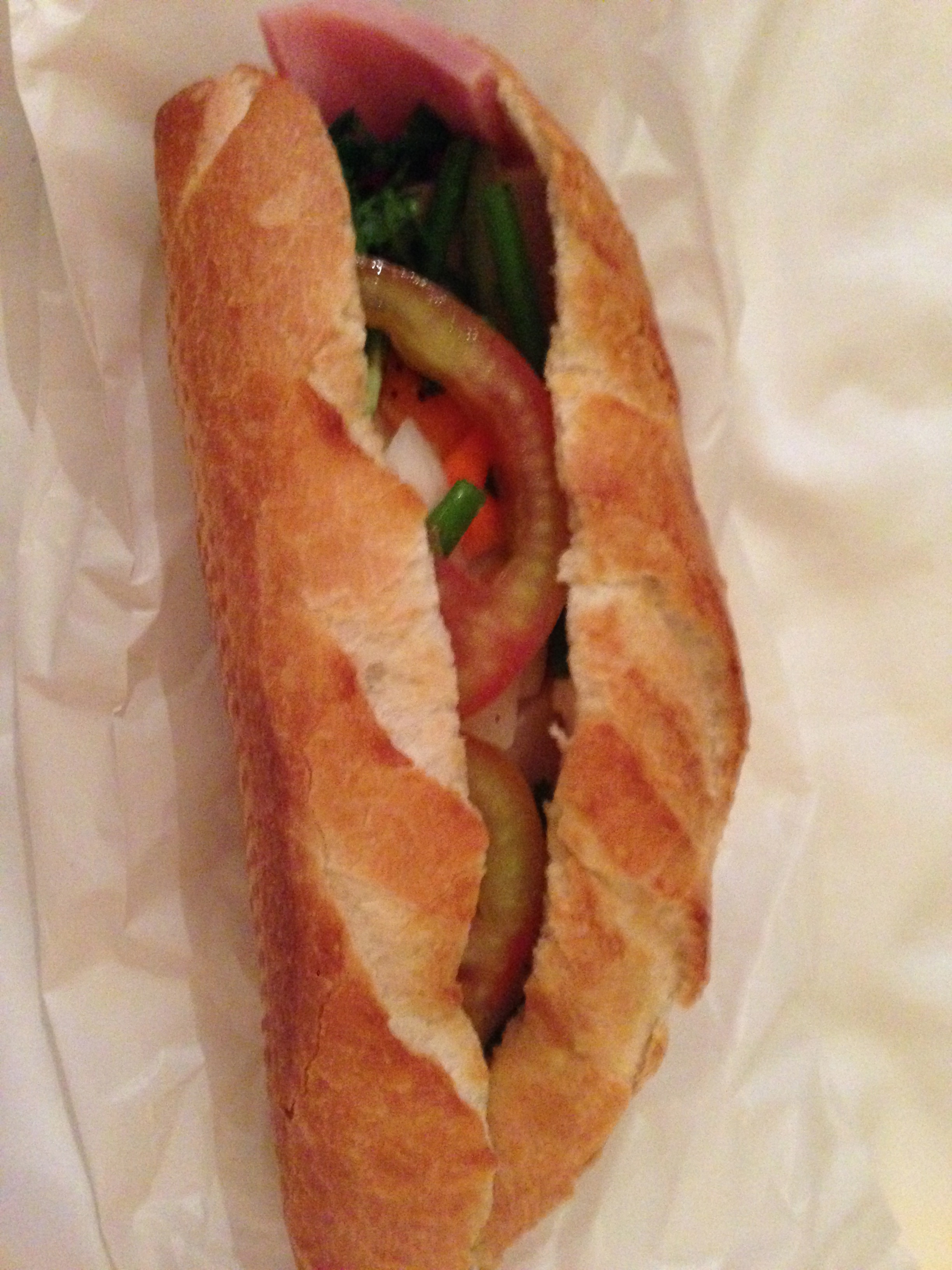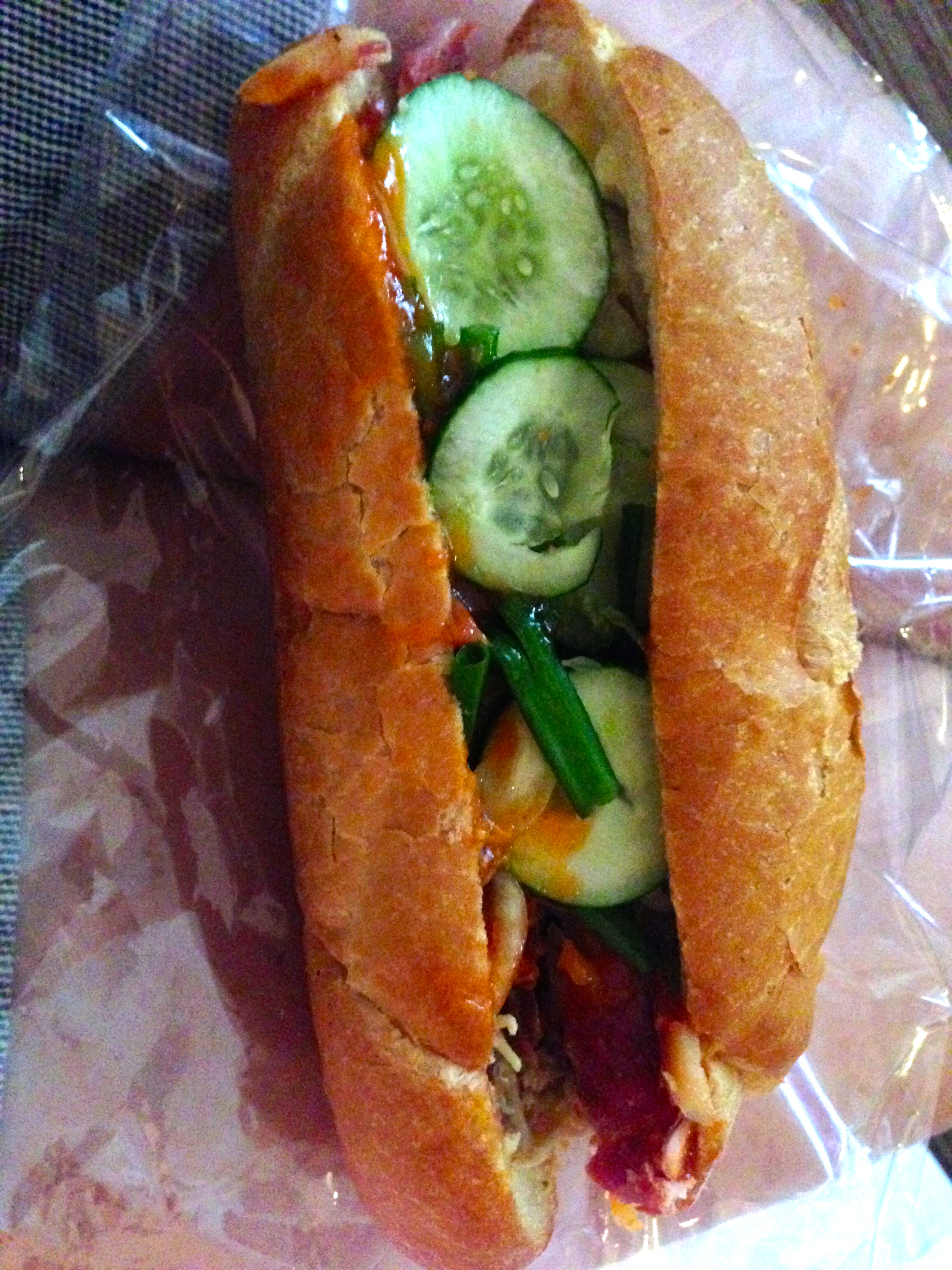 IMG_1962 And the pate and sriracha were good enough, but the lackluster cold cuts made this a typical version – perfectly fine for the reasonable price and location.  But this was nothing spectacular – and certainly did not rival what we had the day before – so not bothering to tell you where you can get an average banh mi.  (Just find any busy place on a street corner.  It’ll be perfectly acceptable.)