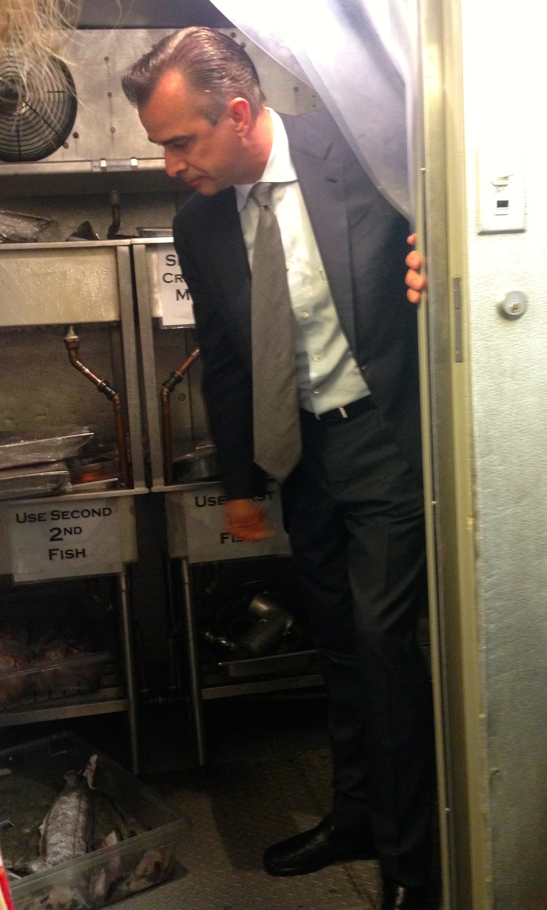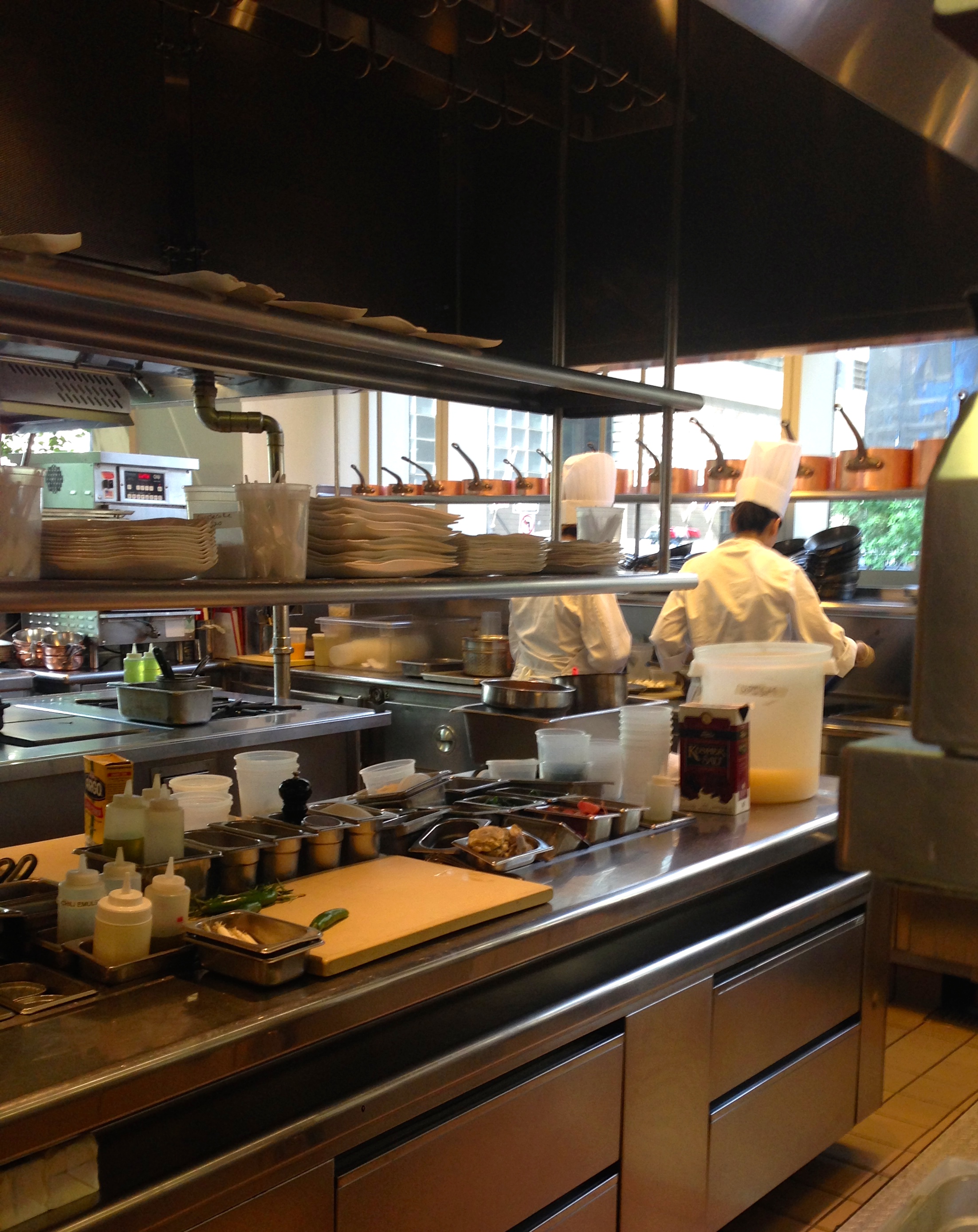 As Philippe passionately explained to us why eating farm-raised fish was problematic (mercury levels) and how the kitchen worked from top to bottom, it was all I could do to resist dipping my finger into the giant bowl of foie gras mousse I passed on the way to the walk-ins where the broken down fish, vegetables and meat are kept.