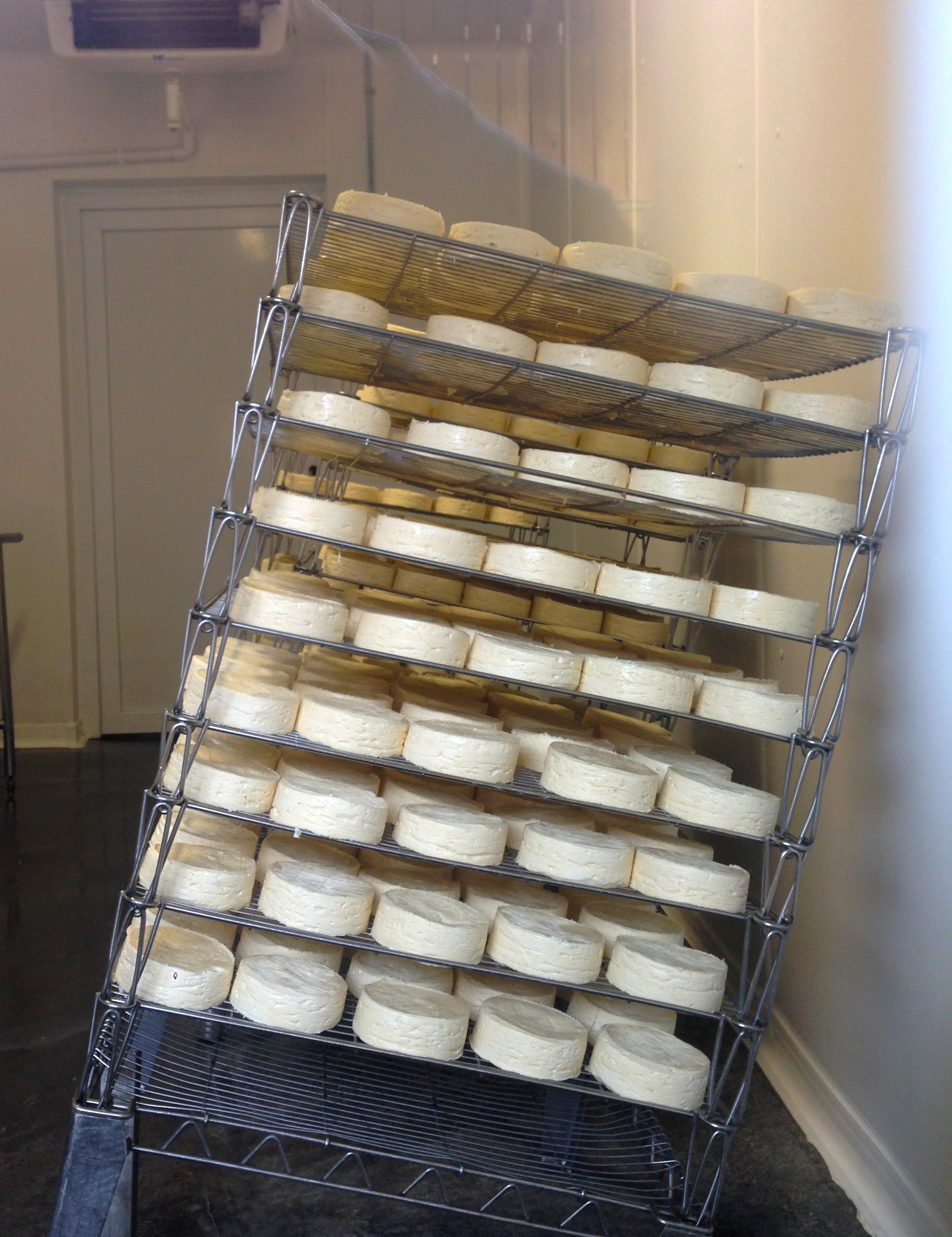 And if you’re lucky, you can even see Francois ladling the curds, which is done 5 times with 40 minutes in between each ladle. This is the secret to the creamy center and what makes Durand’s cheese different from other producers. Each will have slightly different flavors based on what the cows eat, as well as a different consistency, depending on the ladling process and time in between, as well as the length of aging.