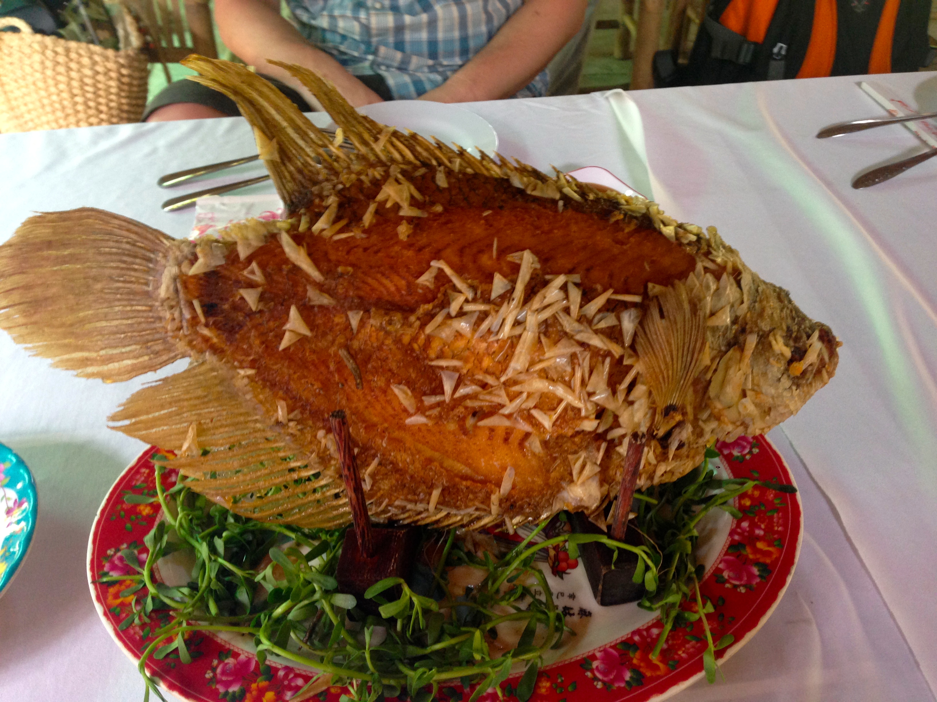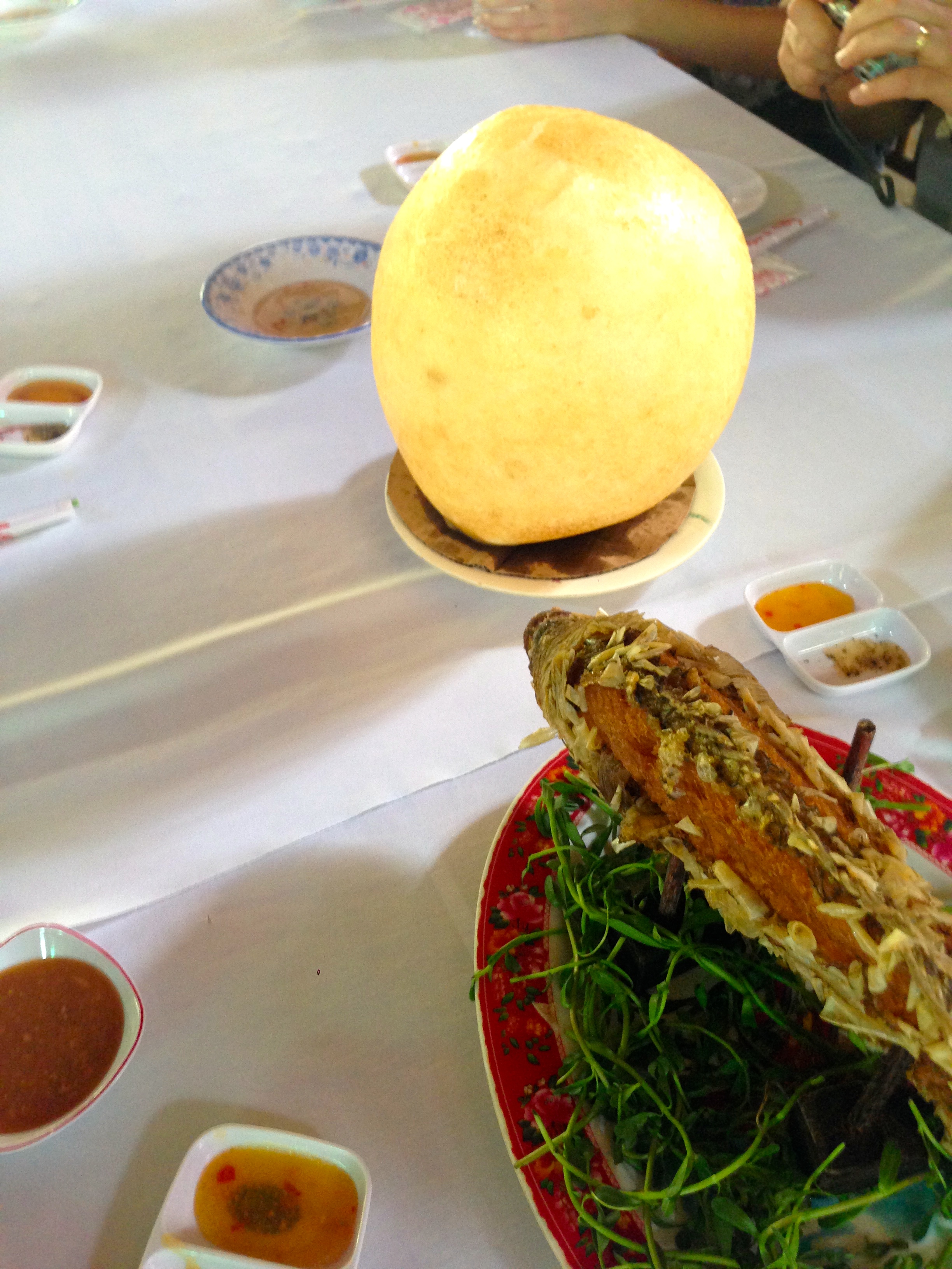 Lunch includes a ton of food, as with all tours in Vietnam, but the highlight is the elephant ear fish and what they call the “Dragon Egg” – a puff of glutinous sticky rice.