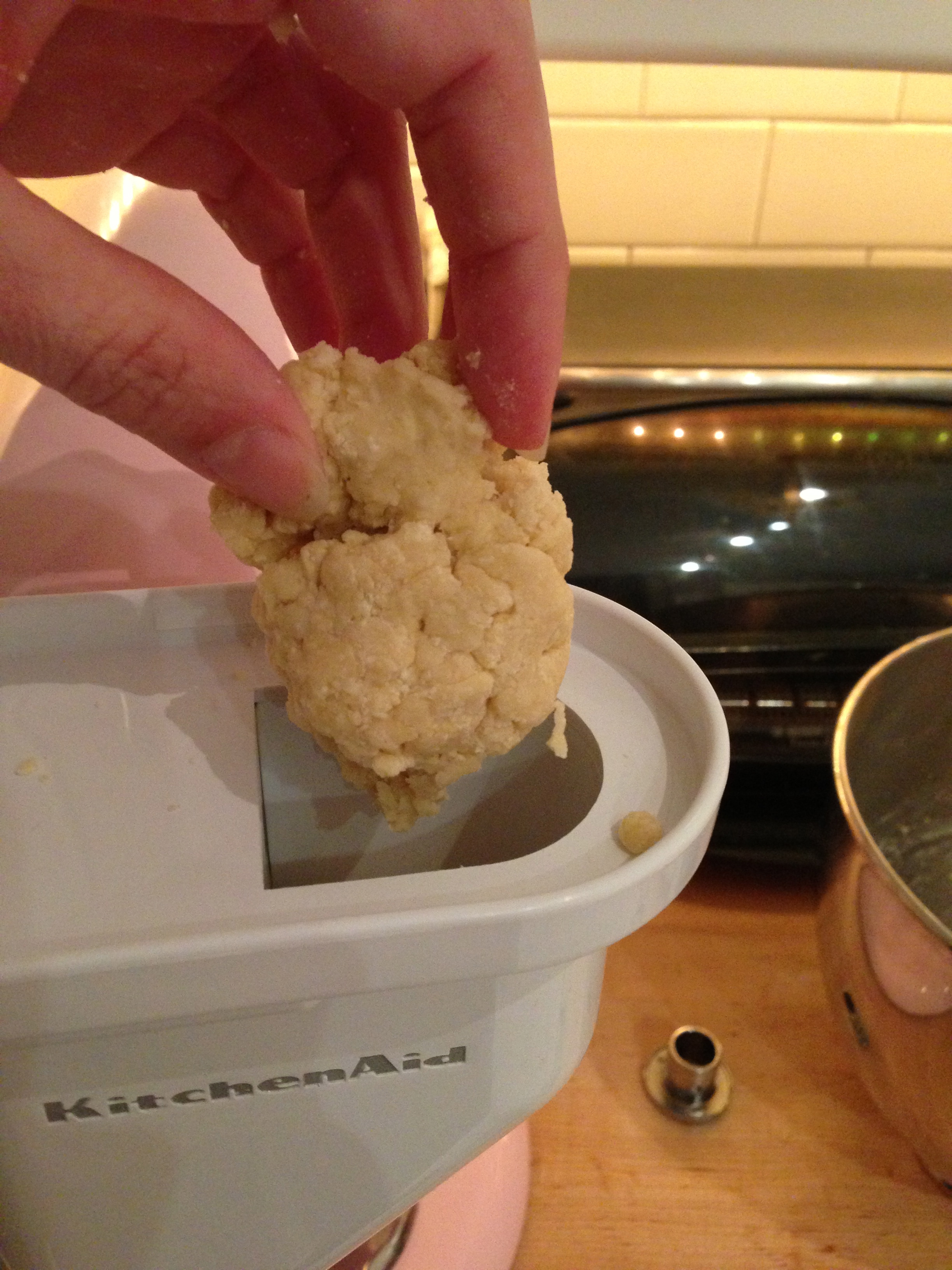 Hand knead the dough and add a tbsp of water at a time, if needed, until the dough comes together and isn’t mealy.