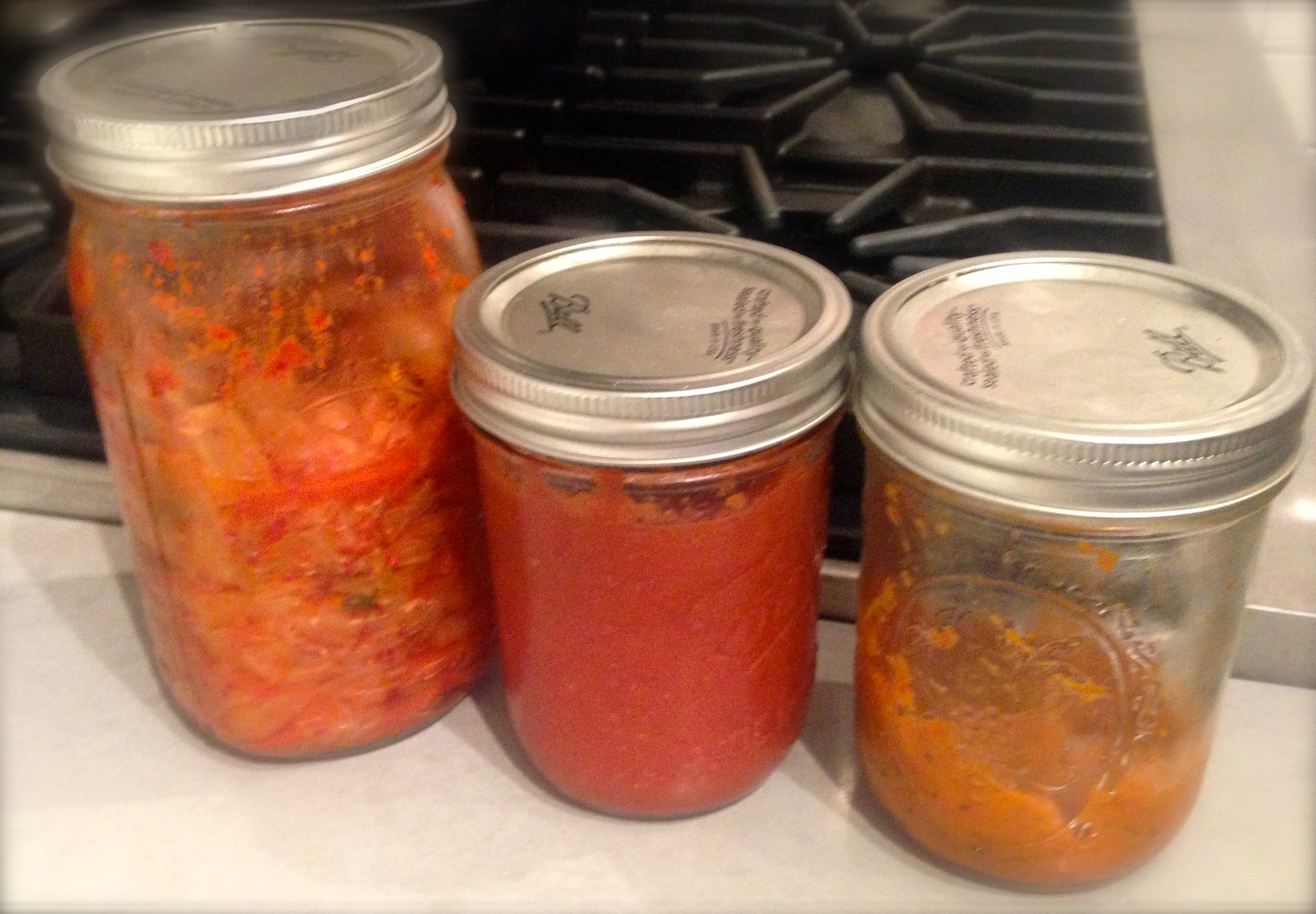 The tomatoes were less challenging, but I’d already made pico de gallo and Sunday gravy a few times. So I decided to try my hand at ketchup. A huge success! It was so delicious, that Heinz is ruined for me, not that I was a big fan before. No scientific recipe for you here either. Basically, I cooked down a ton of tomatoes that I had with onions and garlic, picked out the skins, and then added brown sugar and the other spices in this recipe. I was lazy and didn’t strain, but my immersion blender did a good job with the seeds. Now I want to put it on everything, it’s that good.