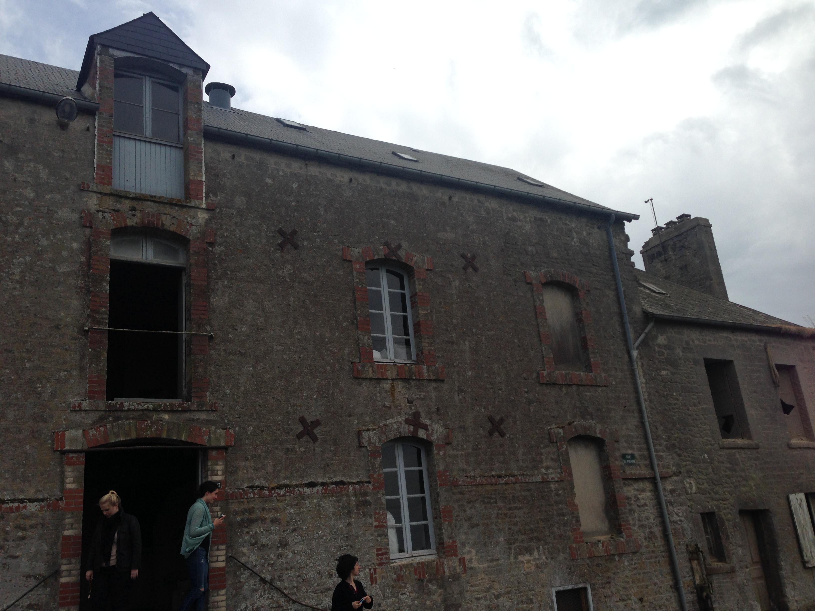 It smells of wheat, old wood and hard work. Boxes dropped by the U.S. during June of 1944 to feed the French during WWII are used as wall covering and seating. Arnaud told us the biscuits are still in there.