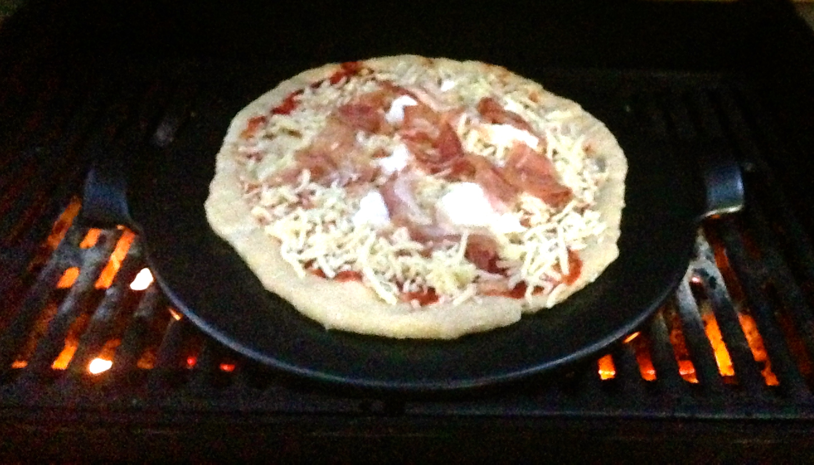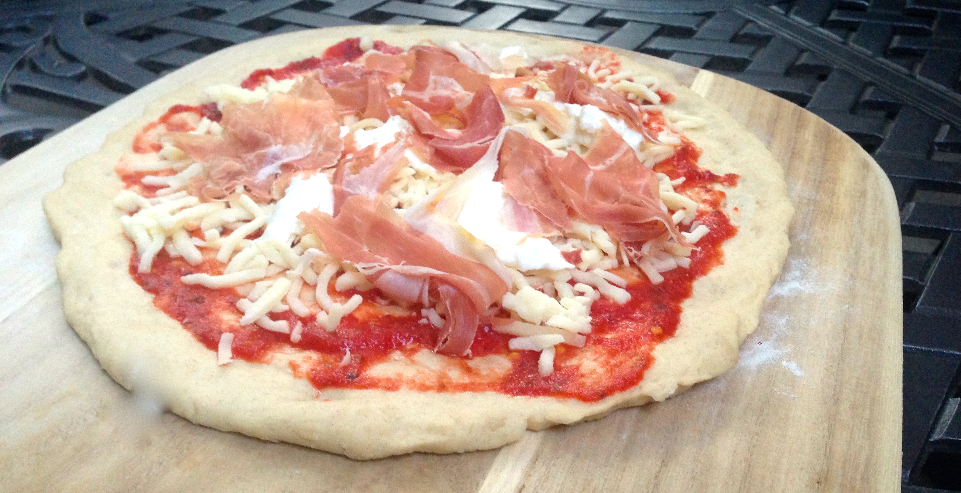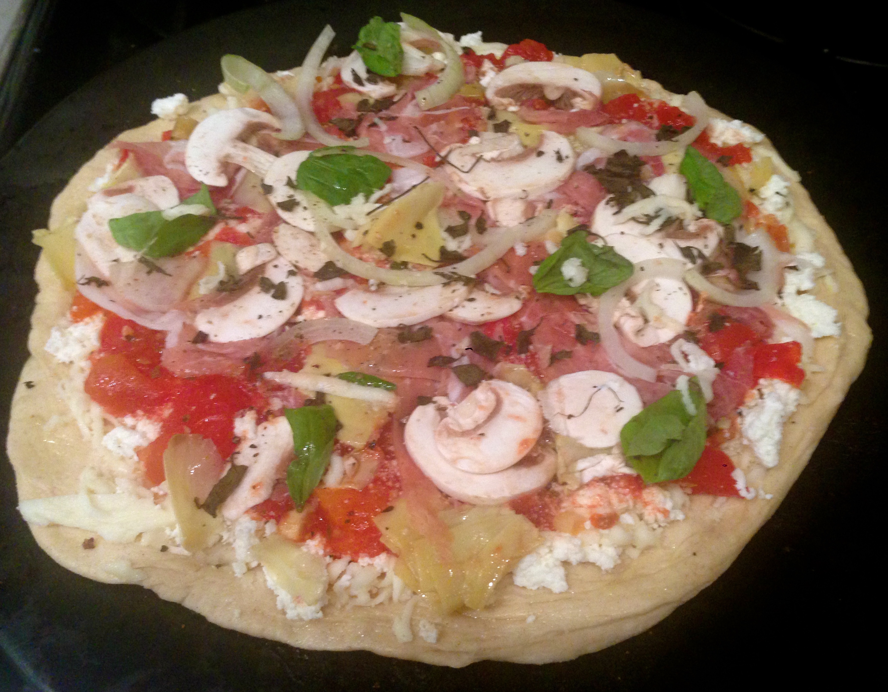 onto the pizza stone- and I even got the pizza off the peel without a giant mess!