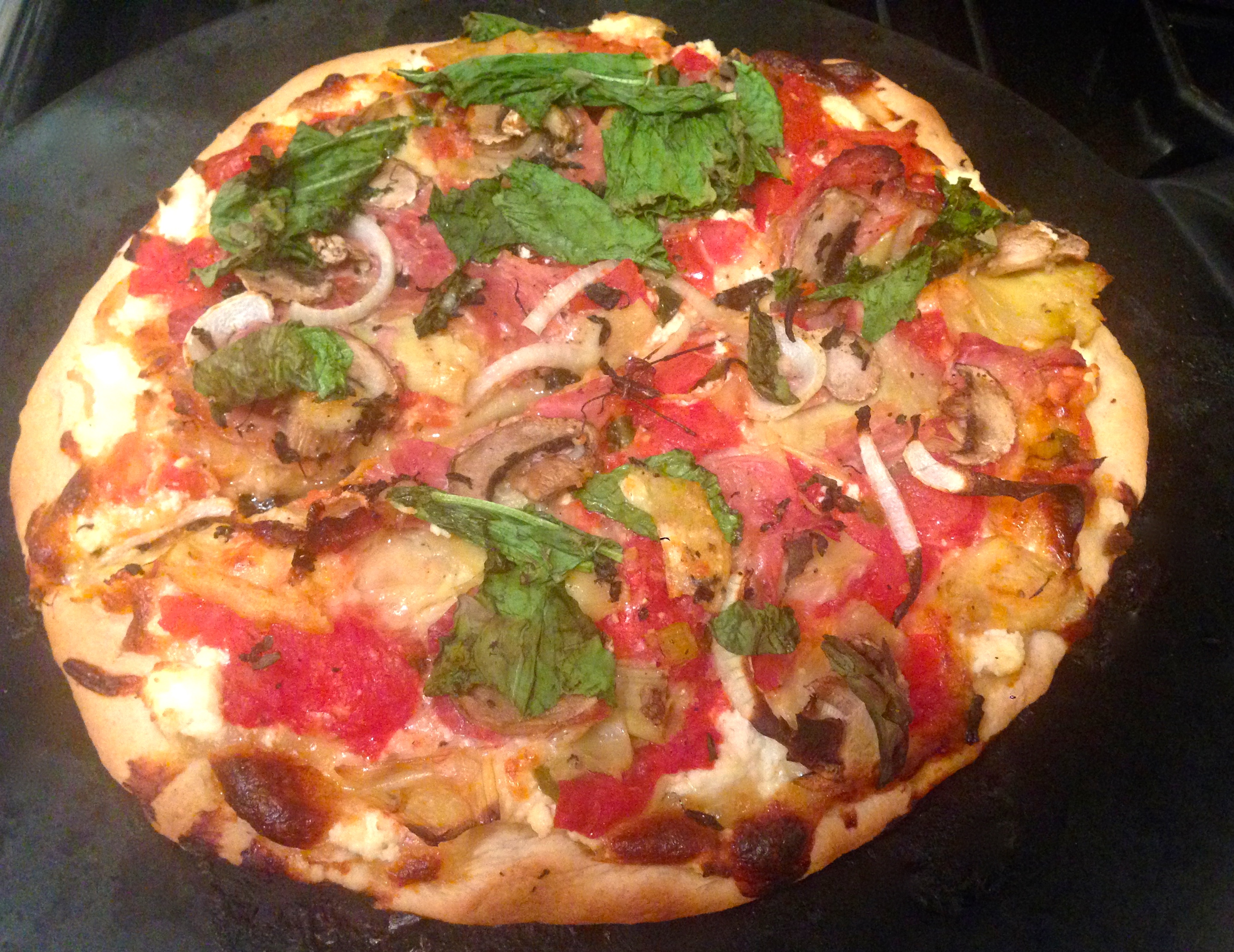 But though it looked nice, the bottom burned because the dough didn’t cook quickly. Or maybe I shouldn’t have used the stone.