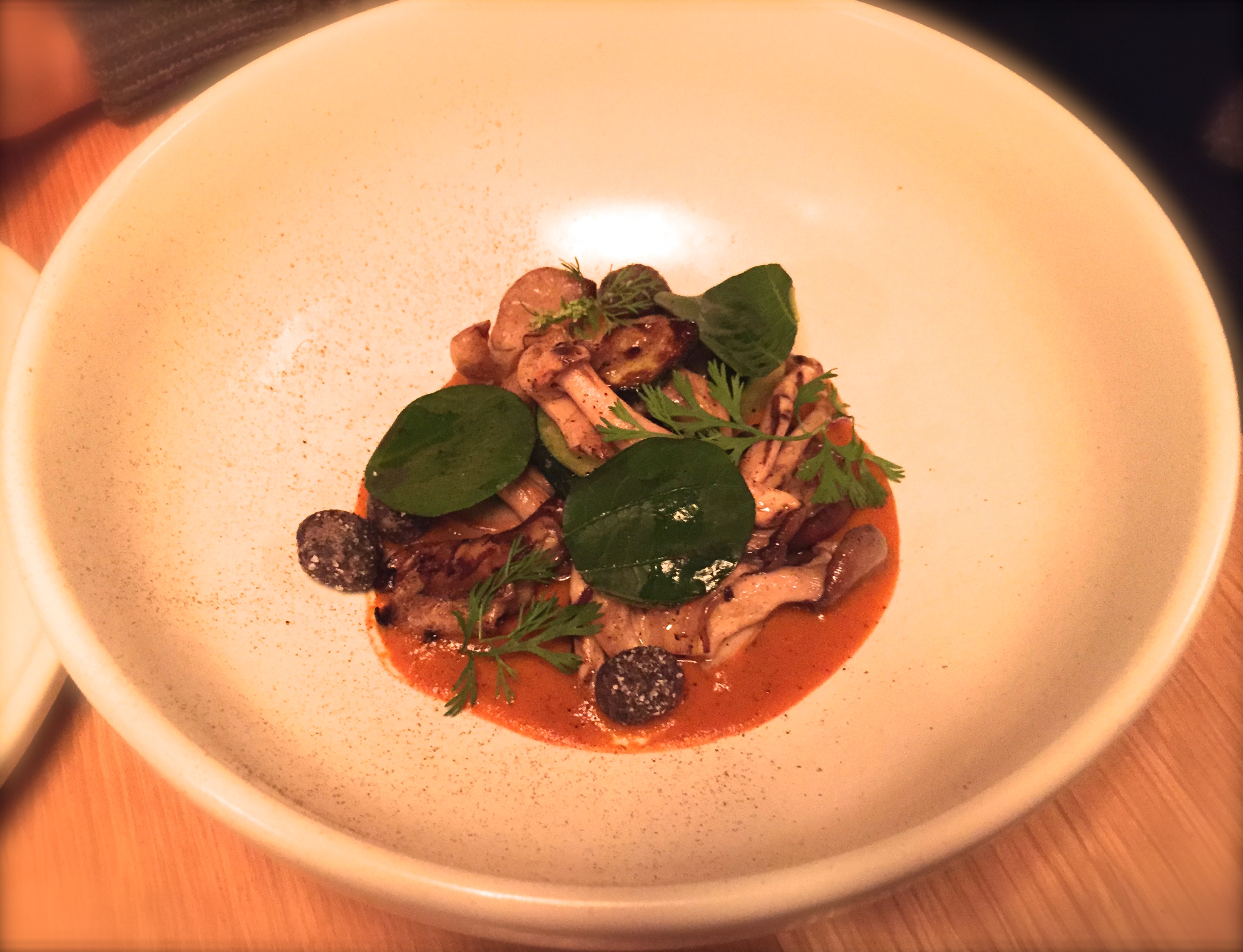 The room was a dark grey, and most tables would require a flashlight to see the menu. The ones with light are all two-tops (where we sat). Don’t expect any privacy though. We were privy to the conversation of a local, former Top Chef contestant sitting on one side of us trying in vain to have a romantic meal. On the other a vapid socialite, obviously there to tell her friends, ordered almost everything on the menu, even though she proclaimed she didn’t like most of the ingredients in the dishes. Then the same table (on a recommendation from the table next to them) proceeded to order not one – but TWO sides of shisito peppers mid-meal. When you can’t escape the diners around you as part of your experience, it’s a problem, especially when it leads to eye rolling.