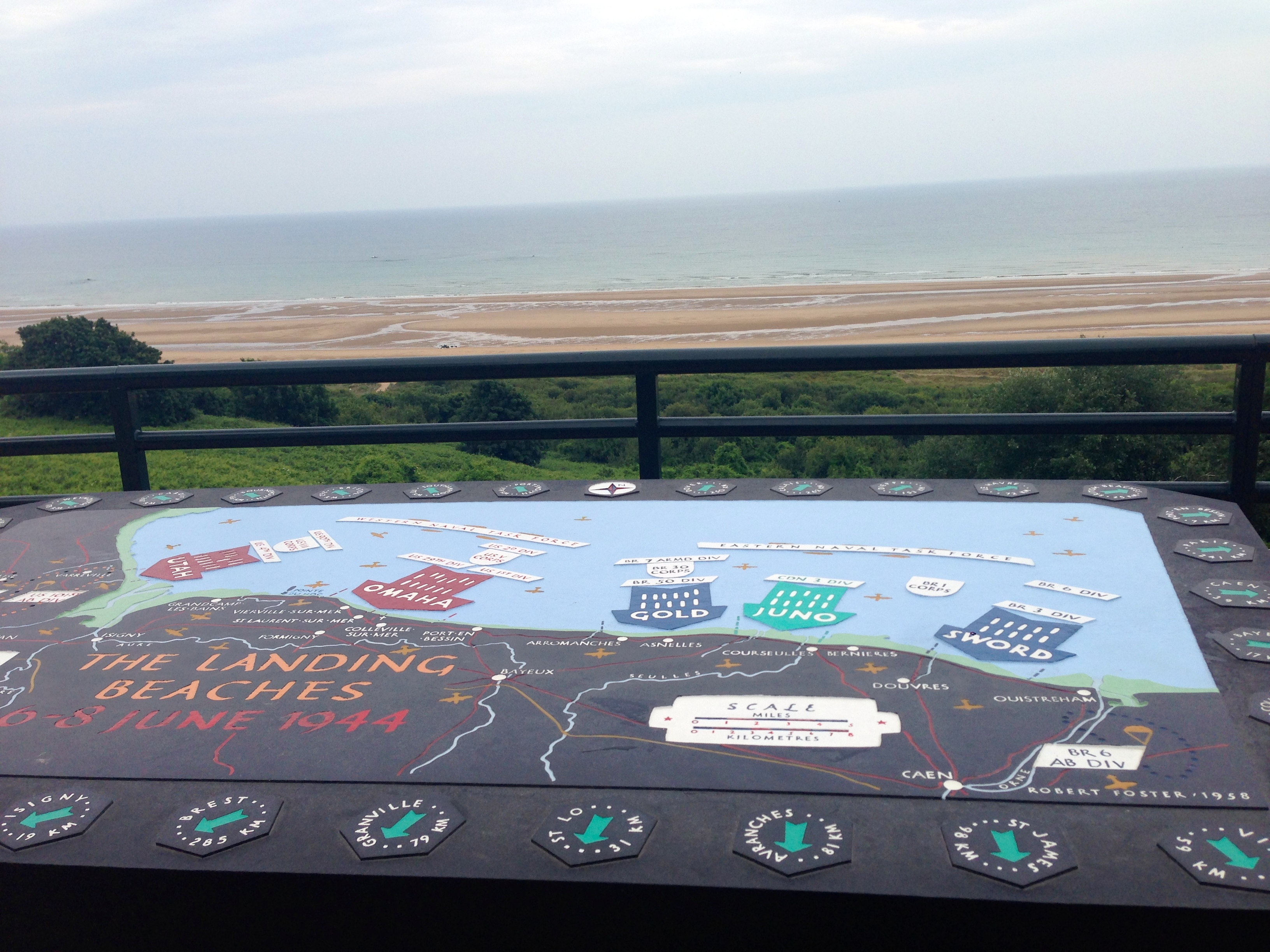 Overlooking the beach, a map shows where the troops landed in the region.
