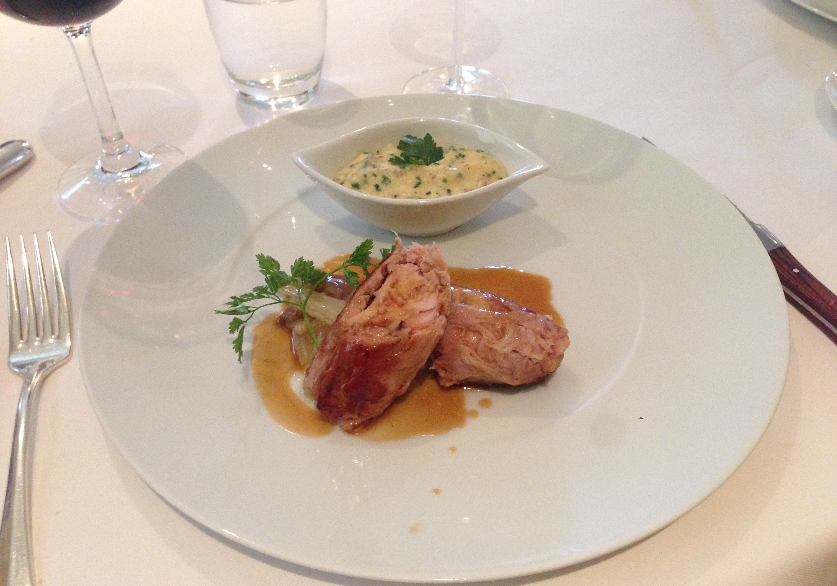 IMG_2887Rabbit was cooked and then turned into a roulade, not what I expected, but still tasty.