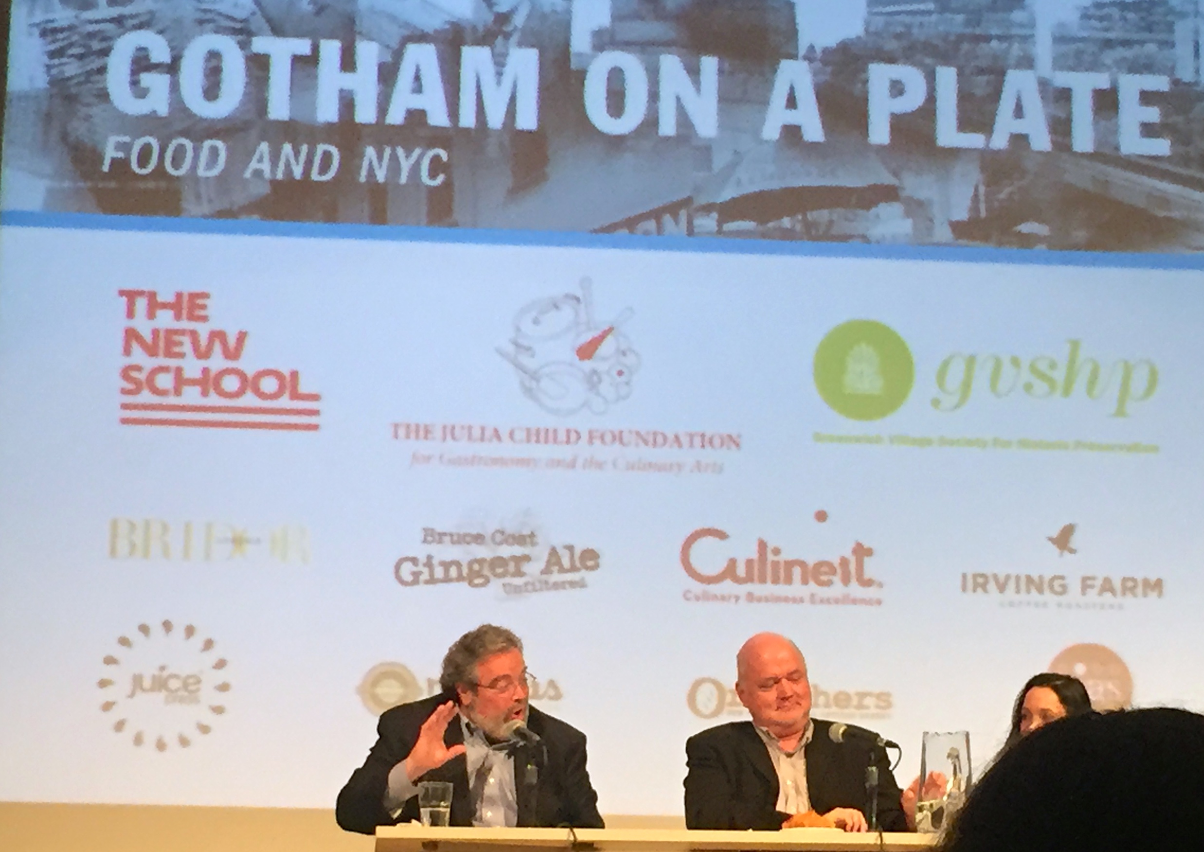 Is there a “New York” cuisine? That was the question that divided Drew Nieporent, Adam Platt, Jacqueline Raposo, David Rosengarten and Michael Whiteman, the panelists during yesterday’s “Business On A Plate” program at the New School, which was moderated by Rozanne Gold. These restaurateurs and food writers joined for some spirited conversation about the current state and future of food in NYC as part of an hour-plus session during “Gotham On A Plate” – a two day conference sponsored by the New School, the Julia Child Foundation for Gastronomy and the Culinary Arts (which happens to be funding my current fellowship with Wine & Spirits Magazine) and the Greenwich Village Society for Historic Preservation.