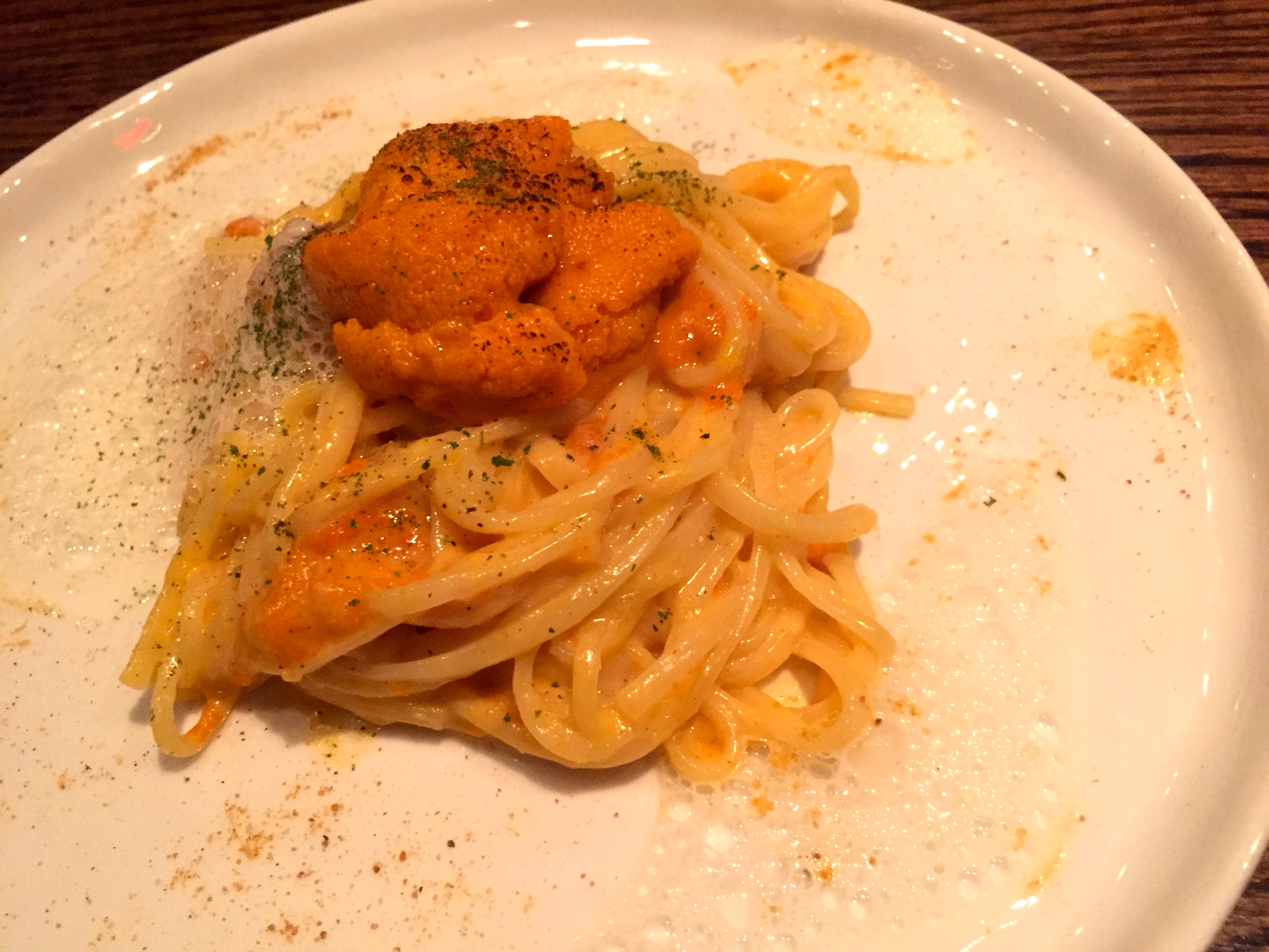 For something more filling, we went with the grilled uni with udon tossed in uni butter, uni salt and foam ($17 on the regular menu). The bartender described it as very fishy, as if that would be off-putting for someone that actually liked uni (did I mention she had a strange way of recommending items on the menu?).