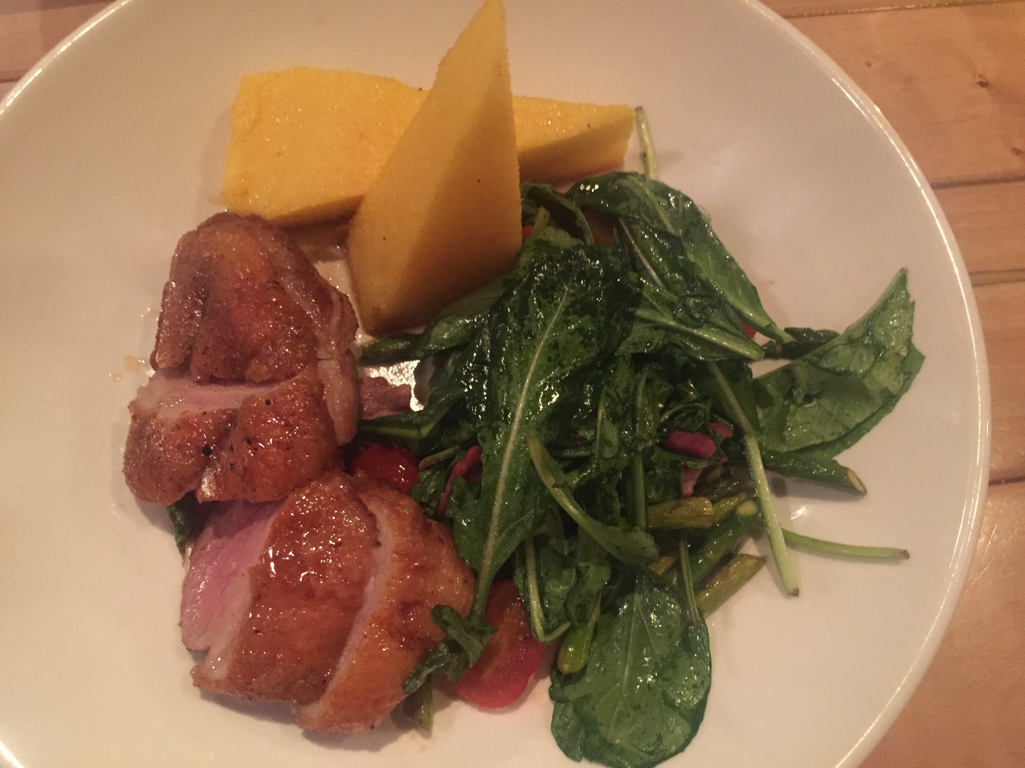 The polenta cake was good and the greens fresh, if over-dressed. But no complaints at a price well under $30.