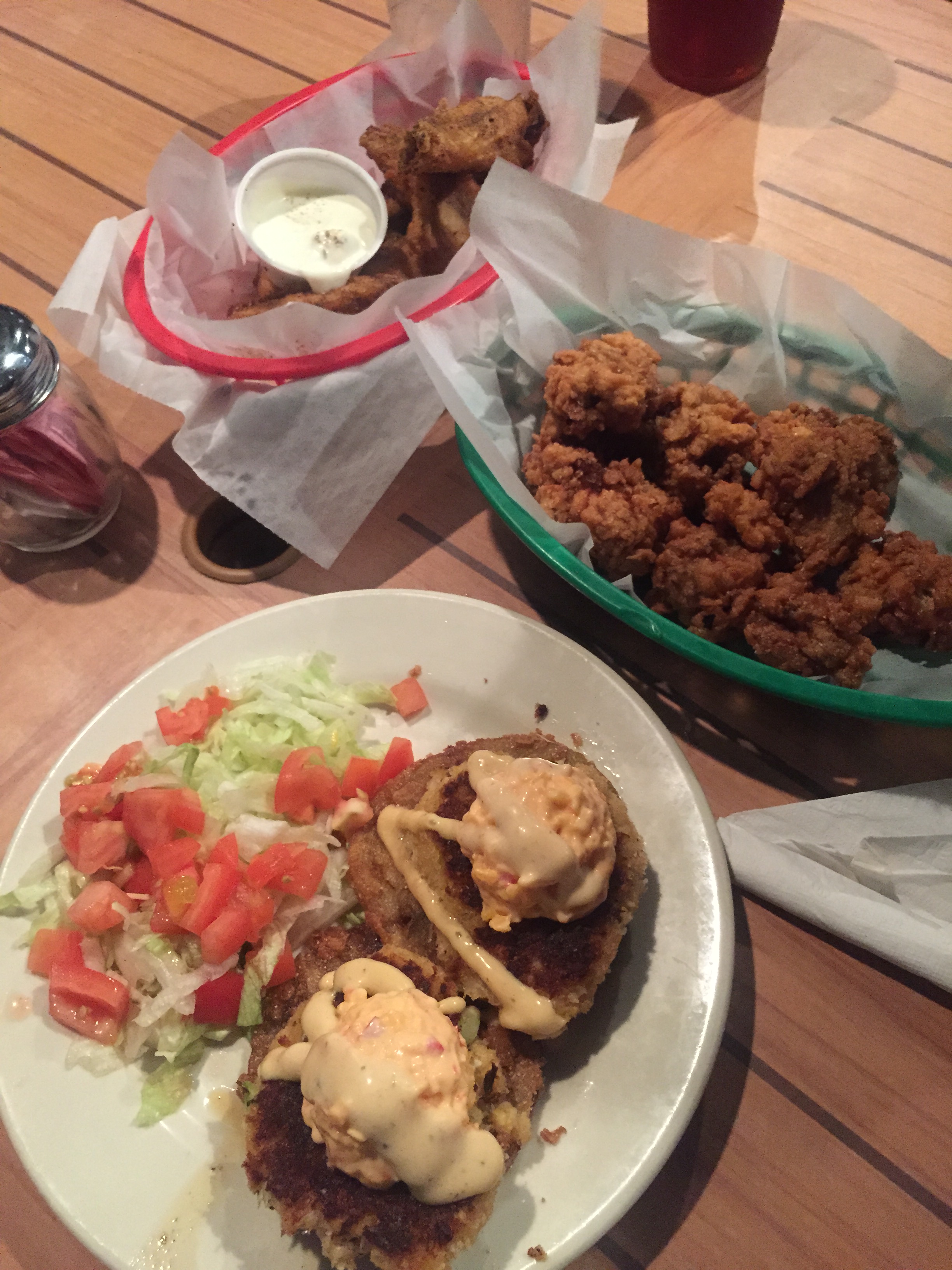 There aren’t a ton of dining options on IOP. We had some frozen drinks while catching the tail end of live reggae at Coconut Joe’s. Then we indulged in fried oysters, fried green tomatoes topped with crab and pimento cheese and chicken wings. And local beer!
