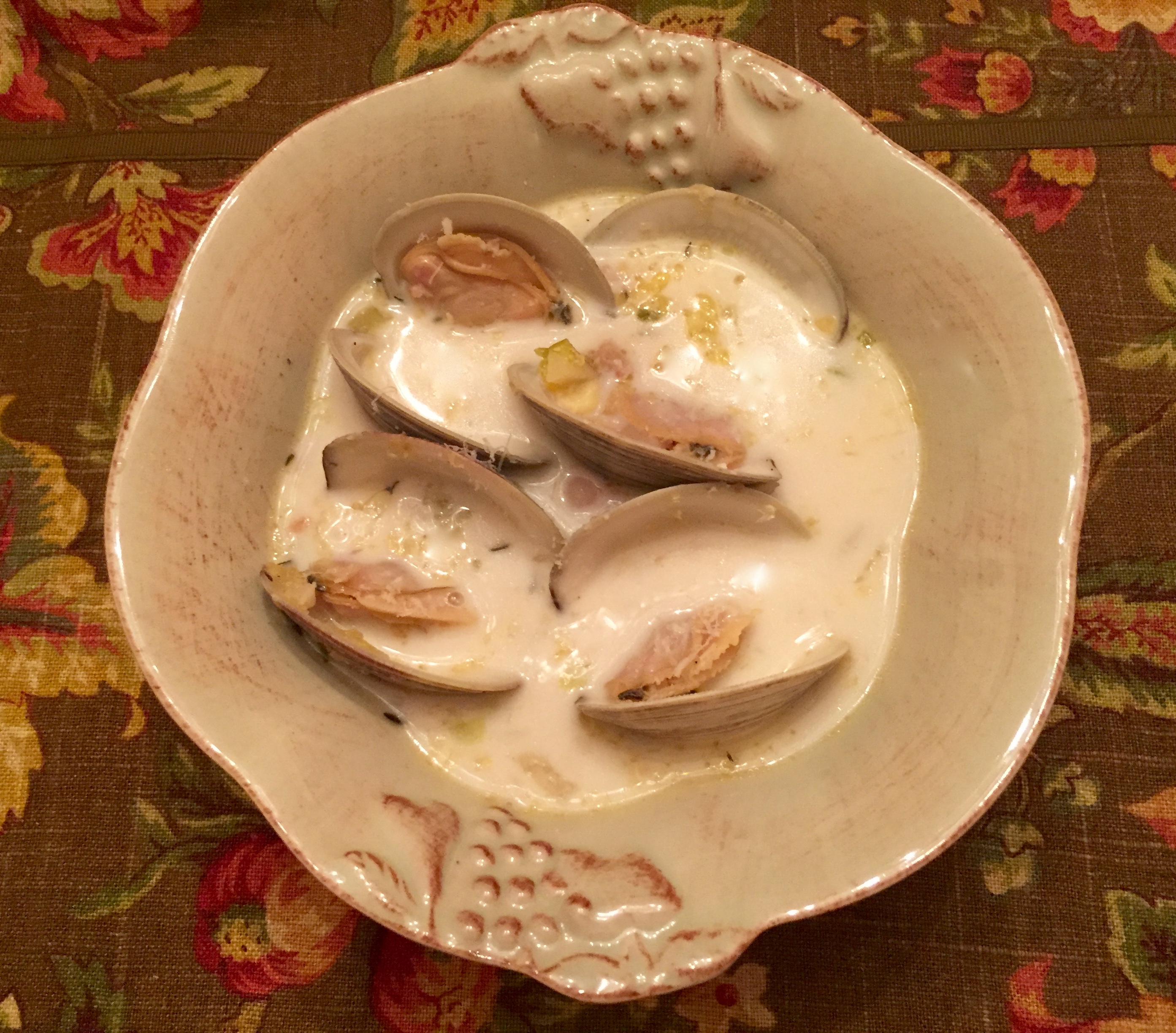 To serve: For a dramatic effect, ladle soup to fill bowl halfway, top with some fresh clams and another ladle full of soup. Or if you don’t want the mess for your guests, remove all the clams from the shells and add back to the soup.