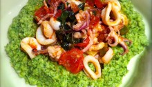 CSA should stand for “creating severe agita.” Figuring out how to utilize my portion of fresh veggies isn’t always easy. First, it was confronting kohlrabi — a battle I won with last week’s puree recipe. Then encounters of the third kind with a ton of scapes, red scallions and purple basil. At this point, I’ve…